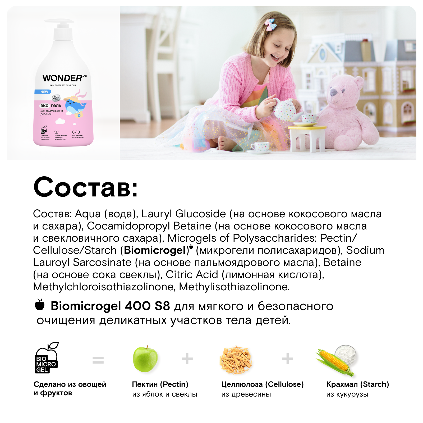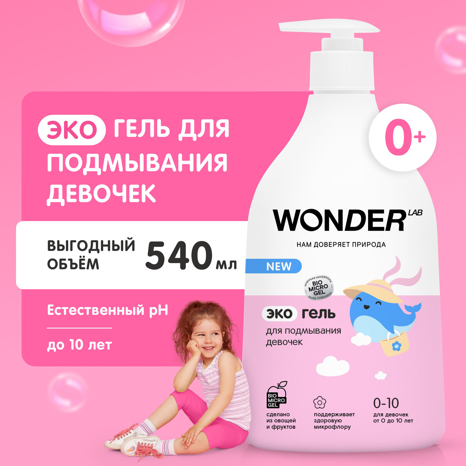 Купить Эко гель для подмывания девочек WONDER LAB, безопасное средство для купания, 0+, 540 мл