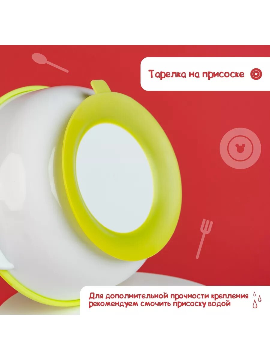 Набор детской посуды «Друзья», 3 предмета: тарелка на присоске, крышка, ложка, цвет зелёный
