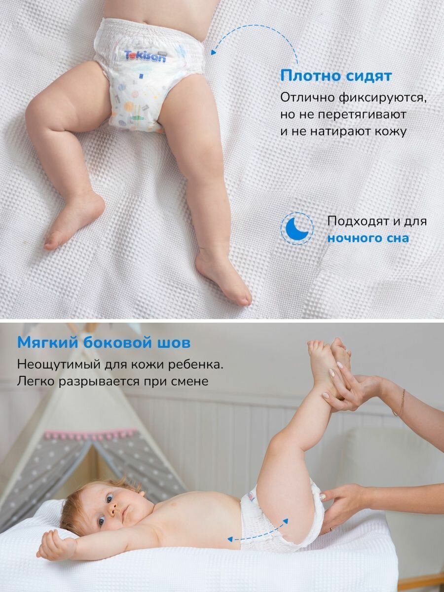 СохранитьПодгузники трусики детские Tokisan, 8-13 кг размер 4 L, 176шт с индикатором влаги Super Soft, дневные / ночные интересное: