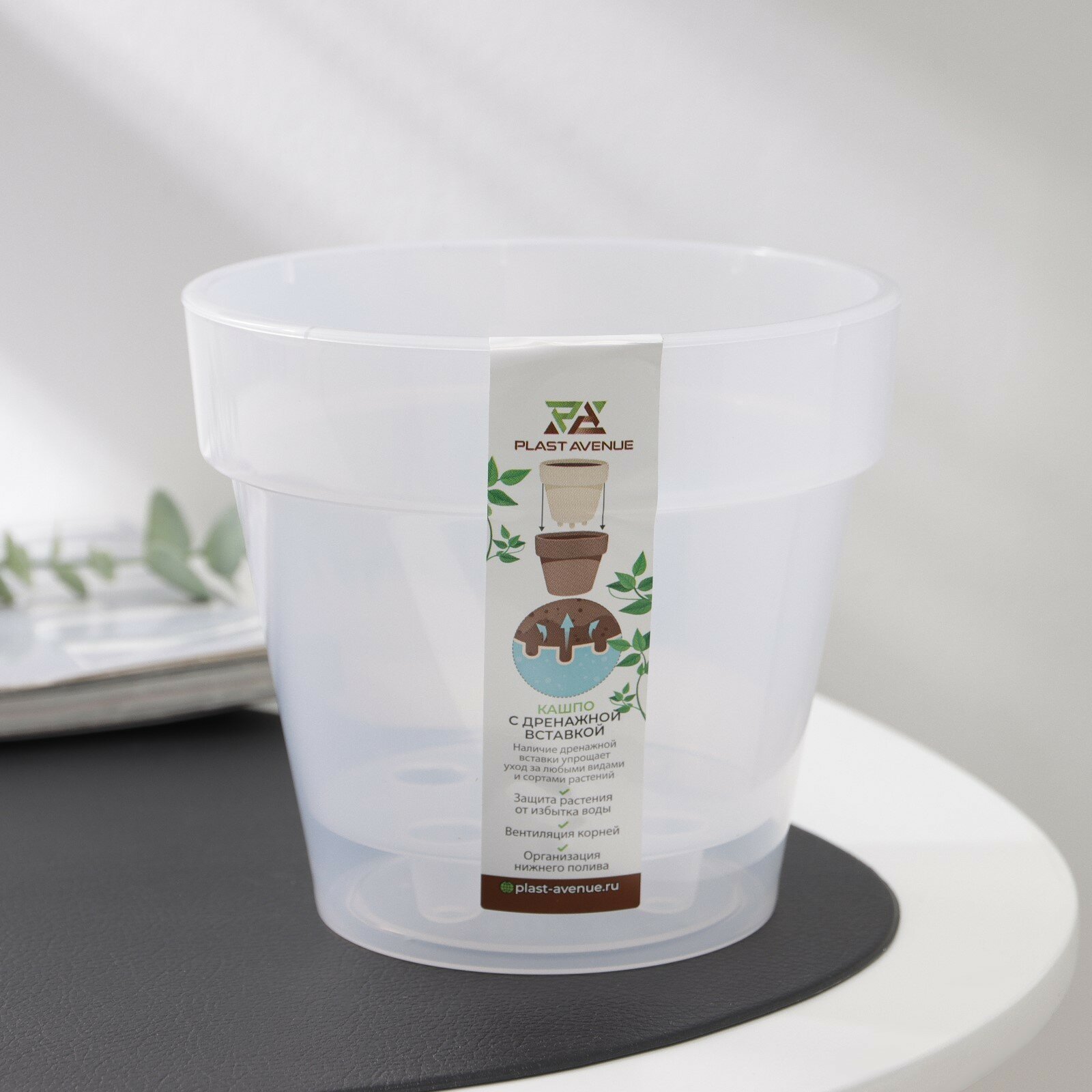 Кашпо для цветов Plast avenue / Пласт Авеню Валенсия со вставкой, пластиковое белое, диаметр 21.5см объем 5.2л