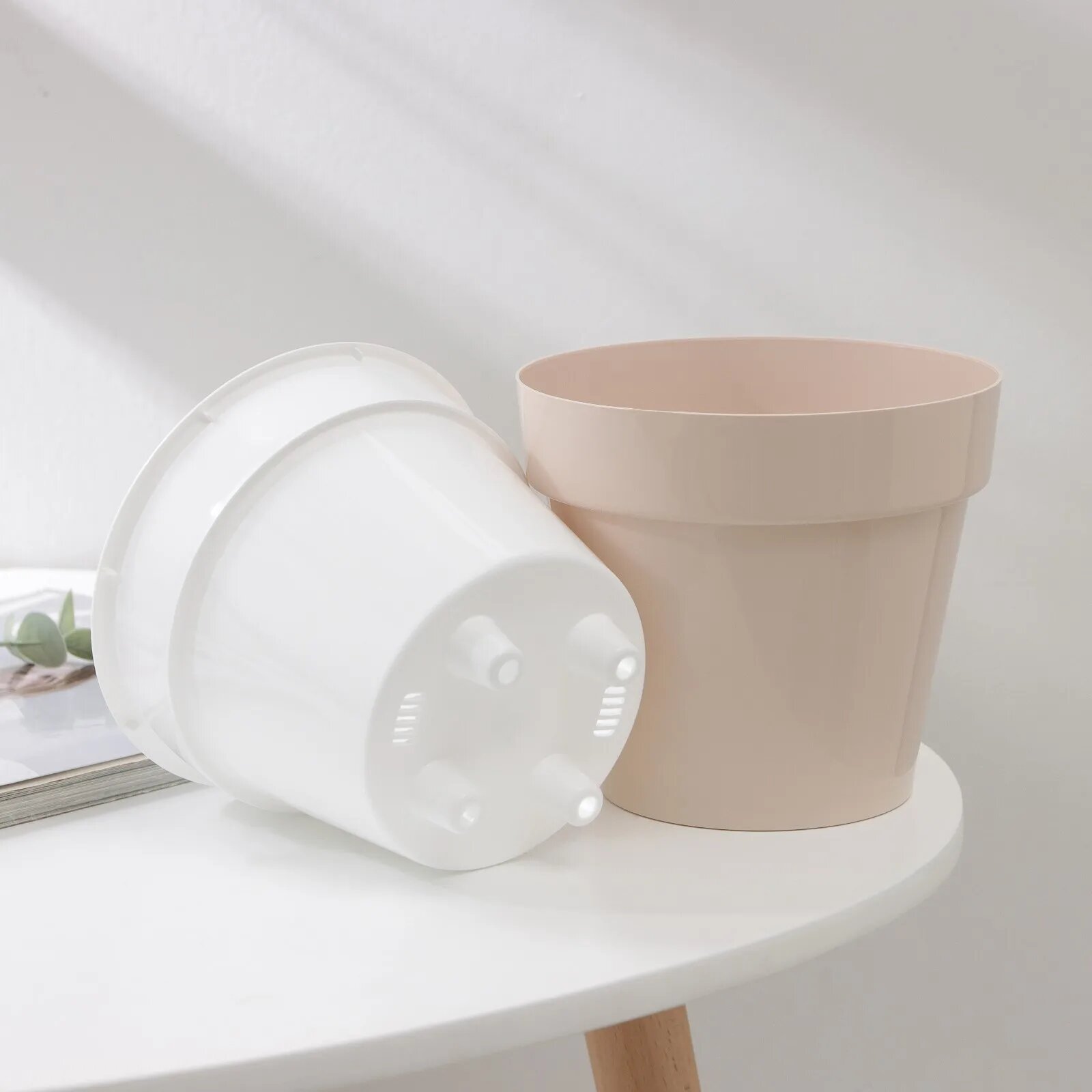 Кашпо для цветов Plast avenue / Пласт Авеню Валенсия со вставкой, пластиковое белое, диаметр 21.5см объем 5.2л