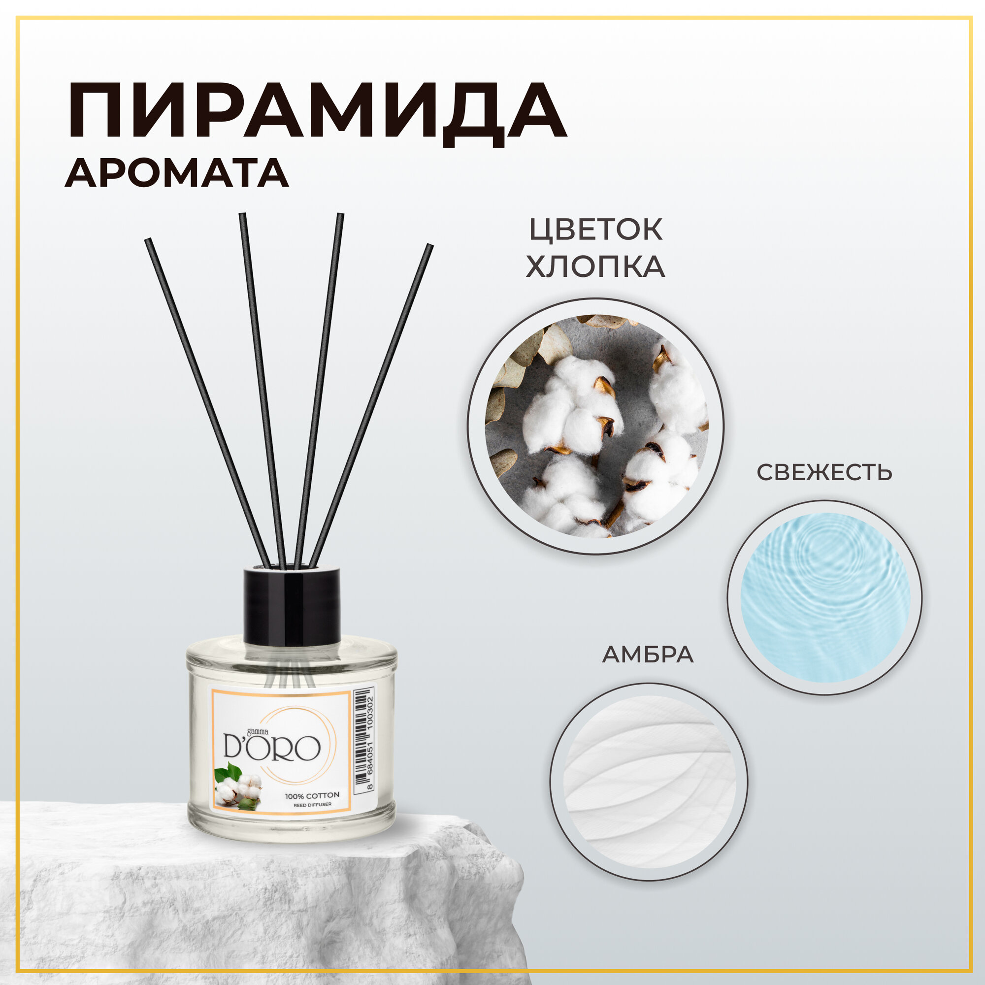 Диффузор для дома Gamma D'Oro 100% Хлопок 55 мл, аромадиффузор с палочками, ароматизатор освежитель воздуха