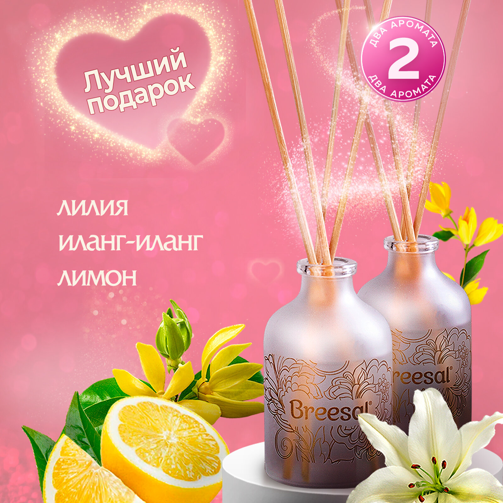 Диффузор ароматический с палочками, Breesal Aromа Sphere Нежный поцелуй, Изысканное наслаждение 40 мл х 2 шт
