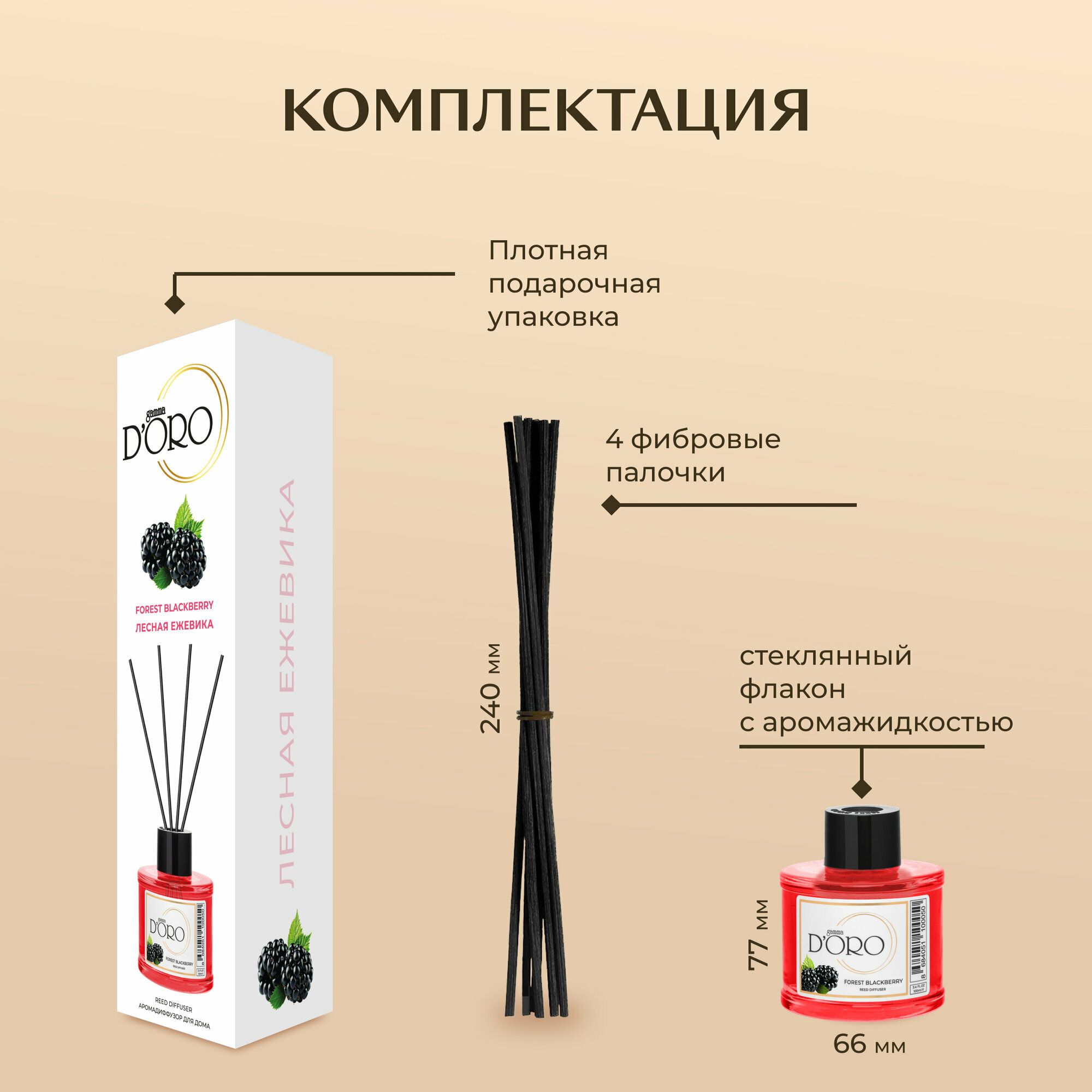 Диффузор для дома Gamma D'Oro Лесная ежевика 55 мл, аромадиффузор с палочками, ароматизатор освежитель воздуха