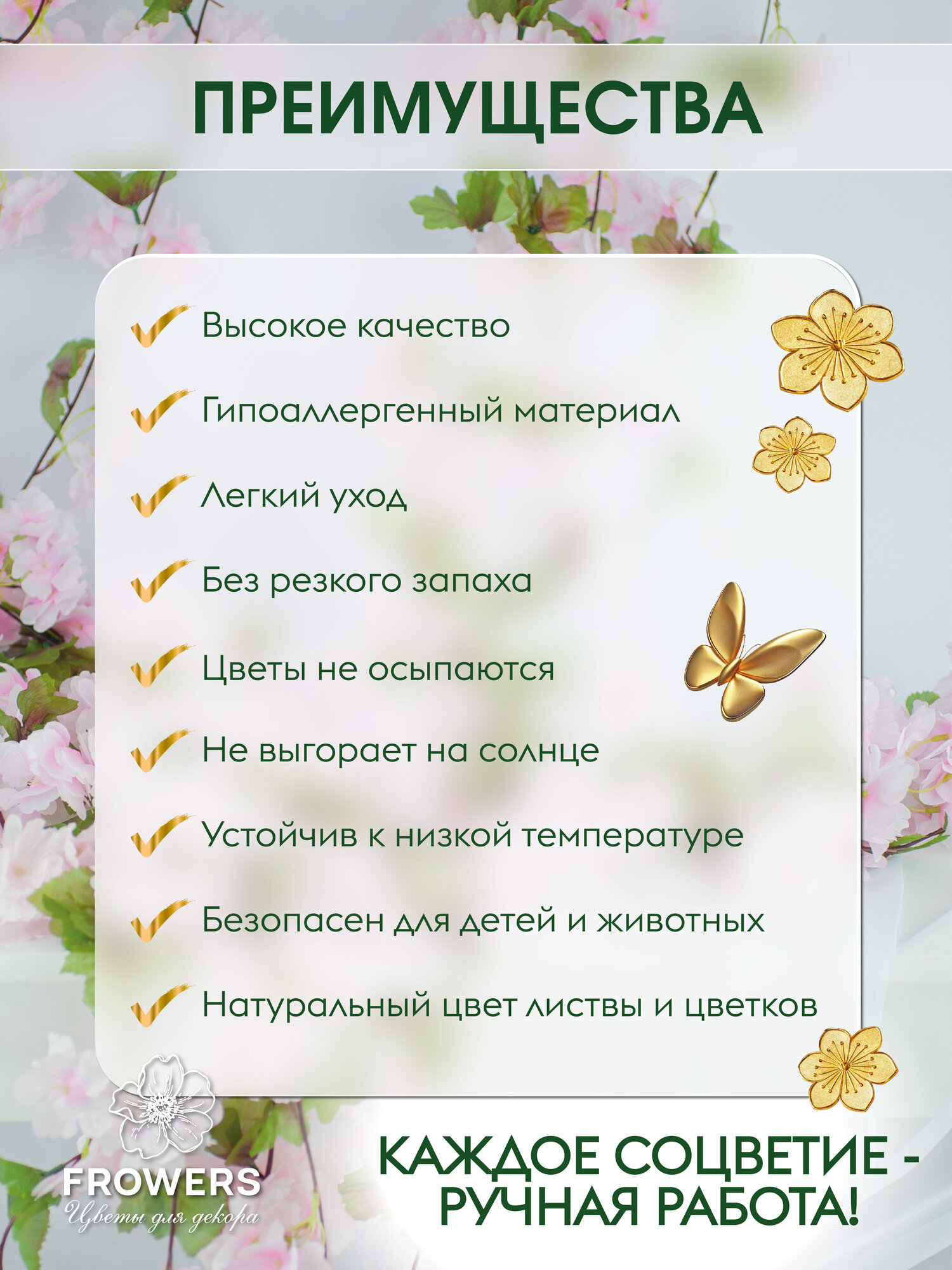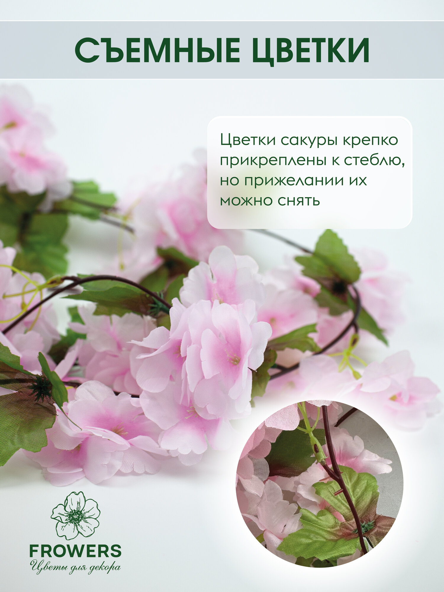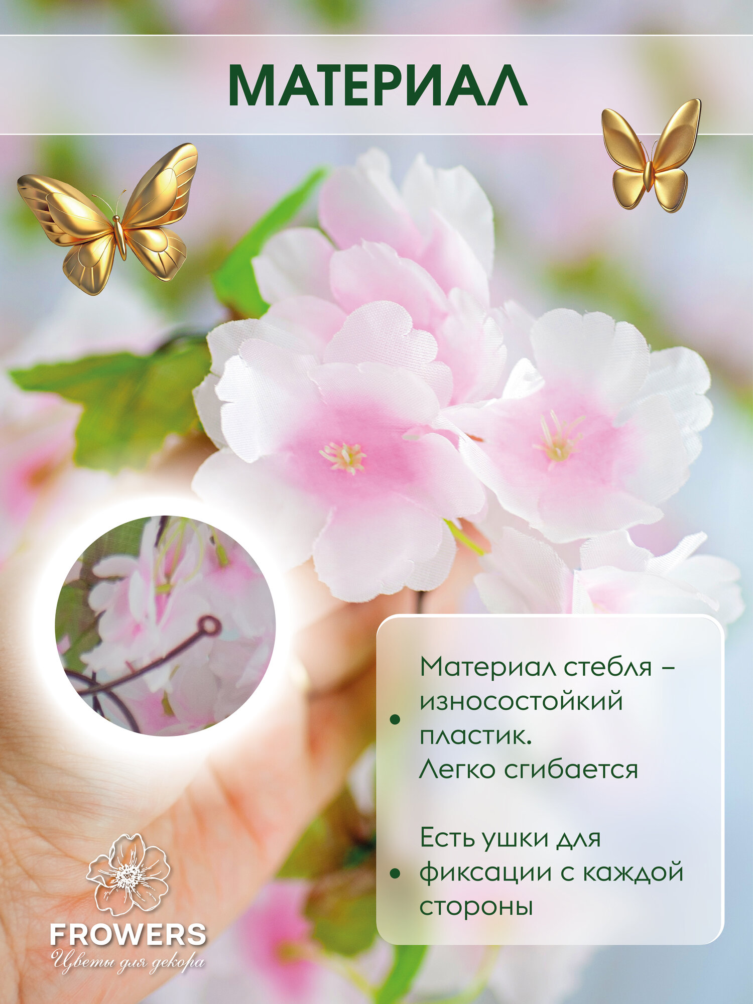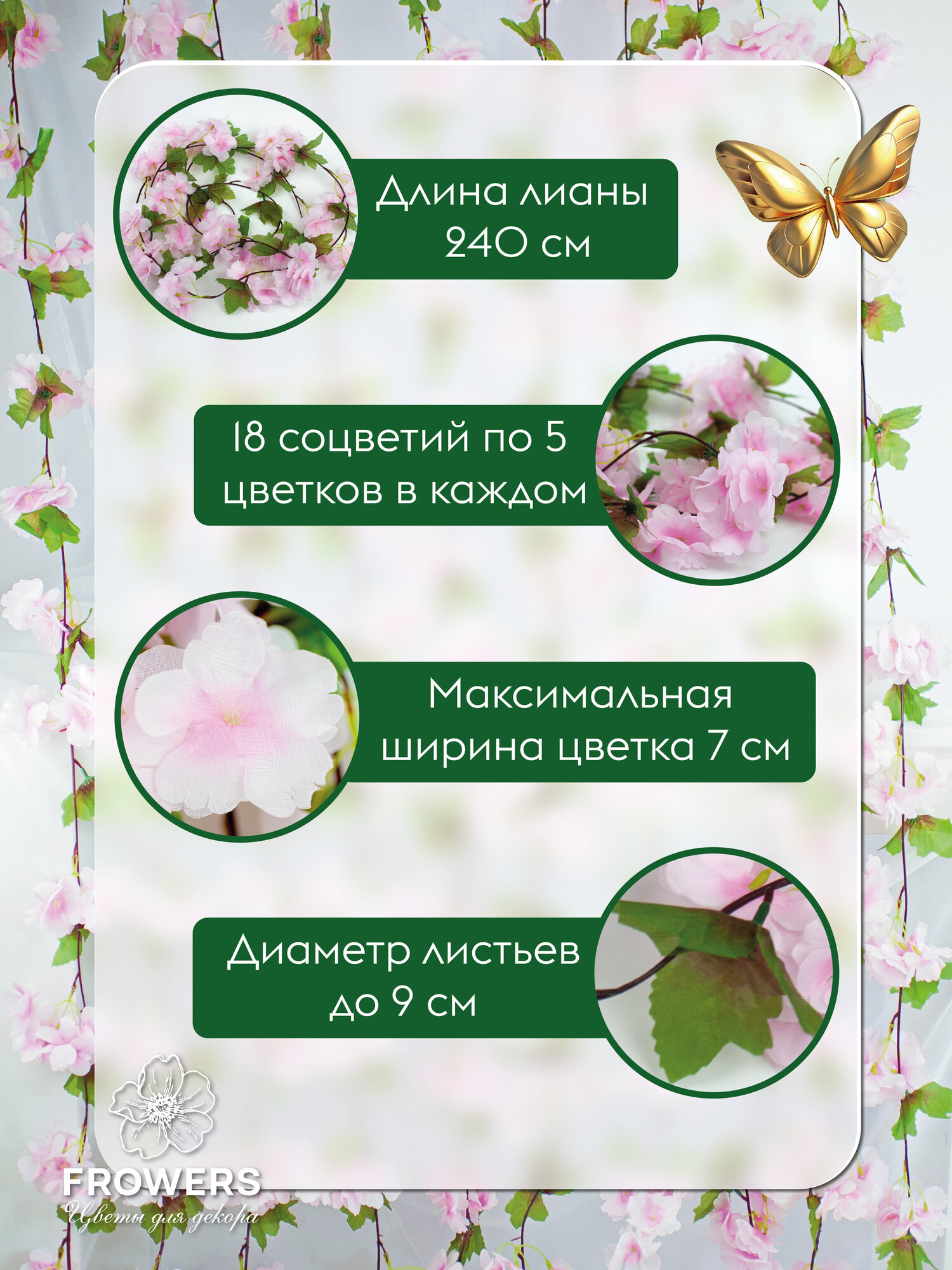 | Дополнительная информация | Искусственные цветы для декора дома, Лиана с листьями Японская Вишня Сакура Белая, 1 штука 240 см |