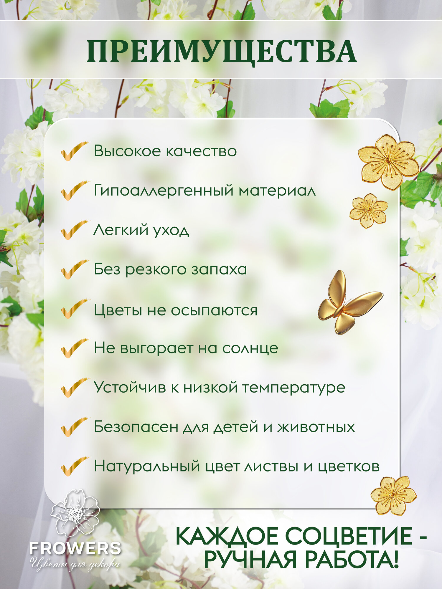 Лиана сакура искусственная с цветами для декора 240 см белая с листьями интересное: