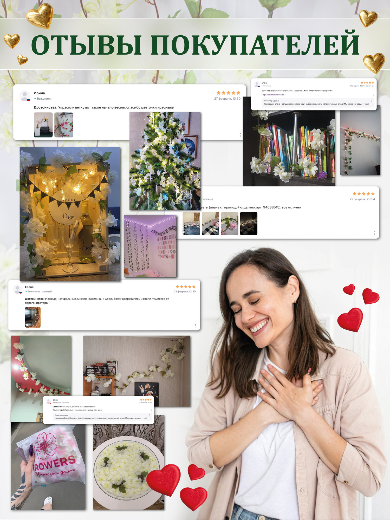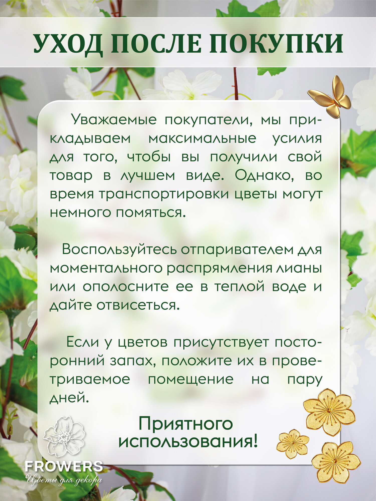 | Дополнительная информация | Искусственные цветы для декора дома, Лиана с листьями Японская Вишня Сакура Белая, 1 штука 240 см |