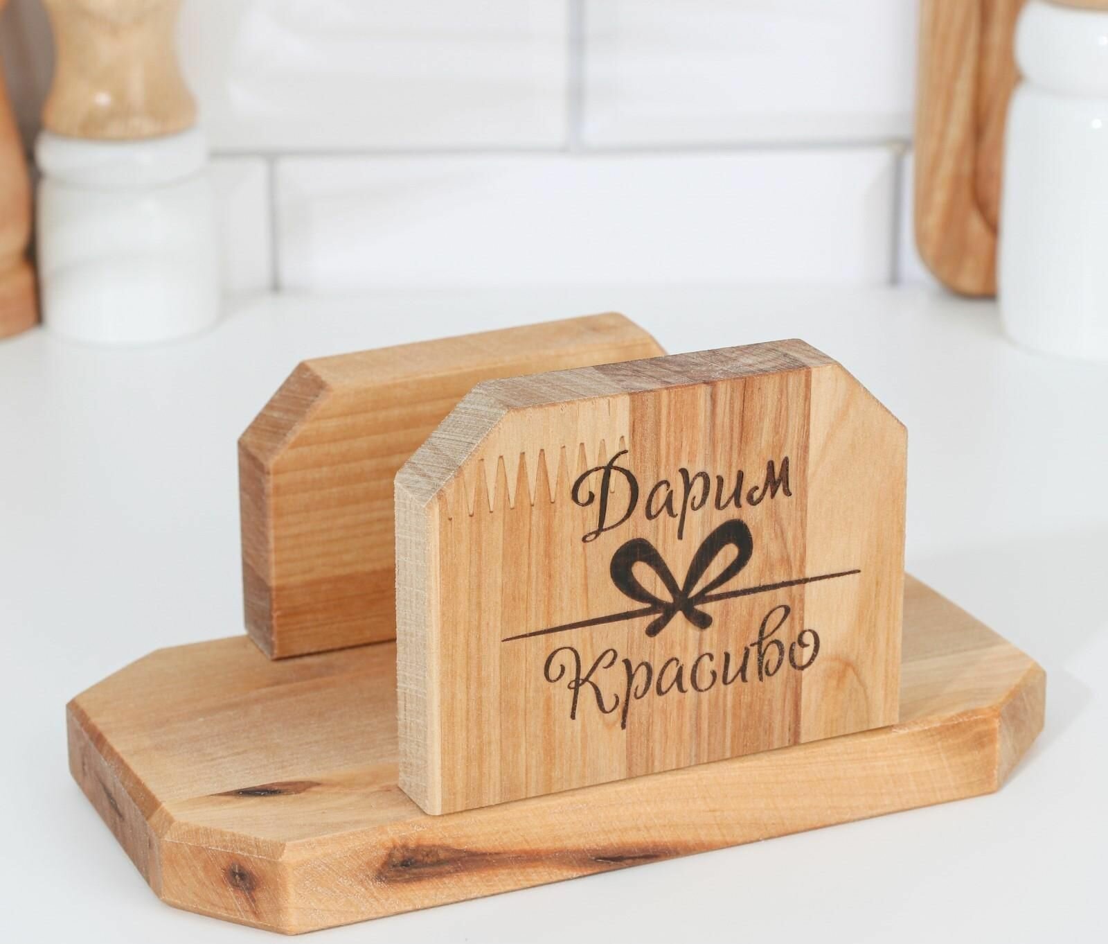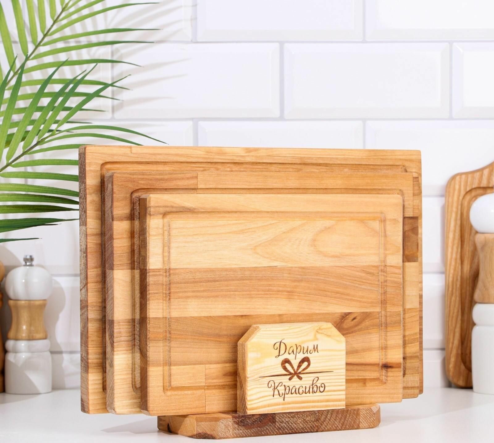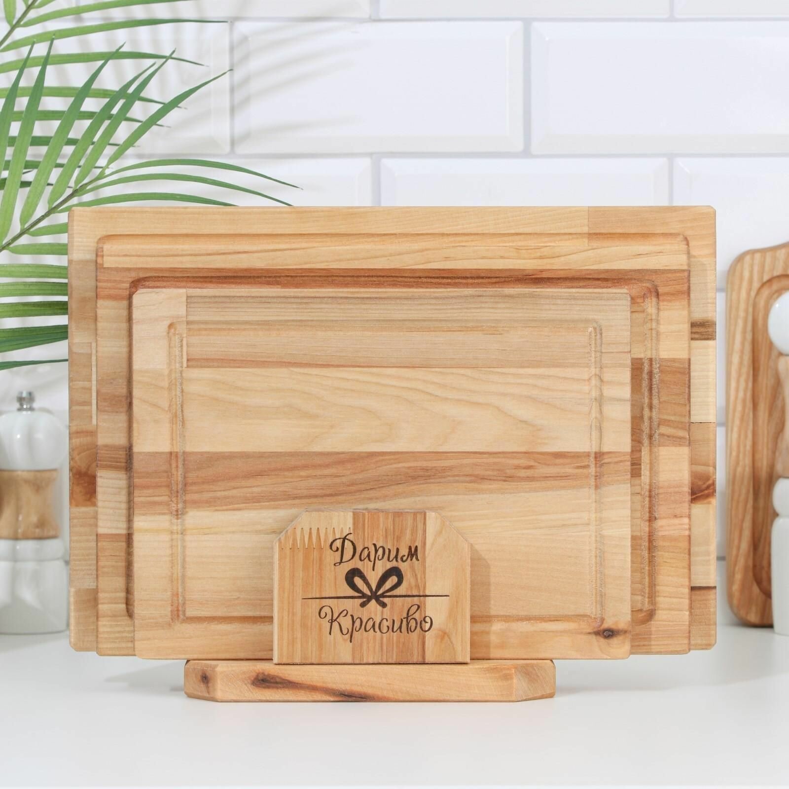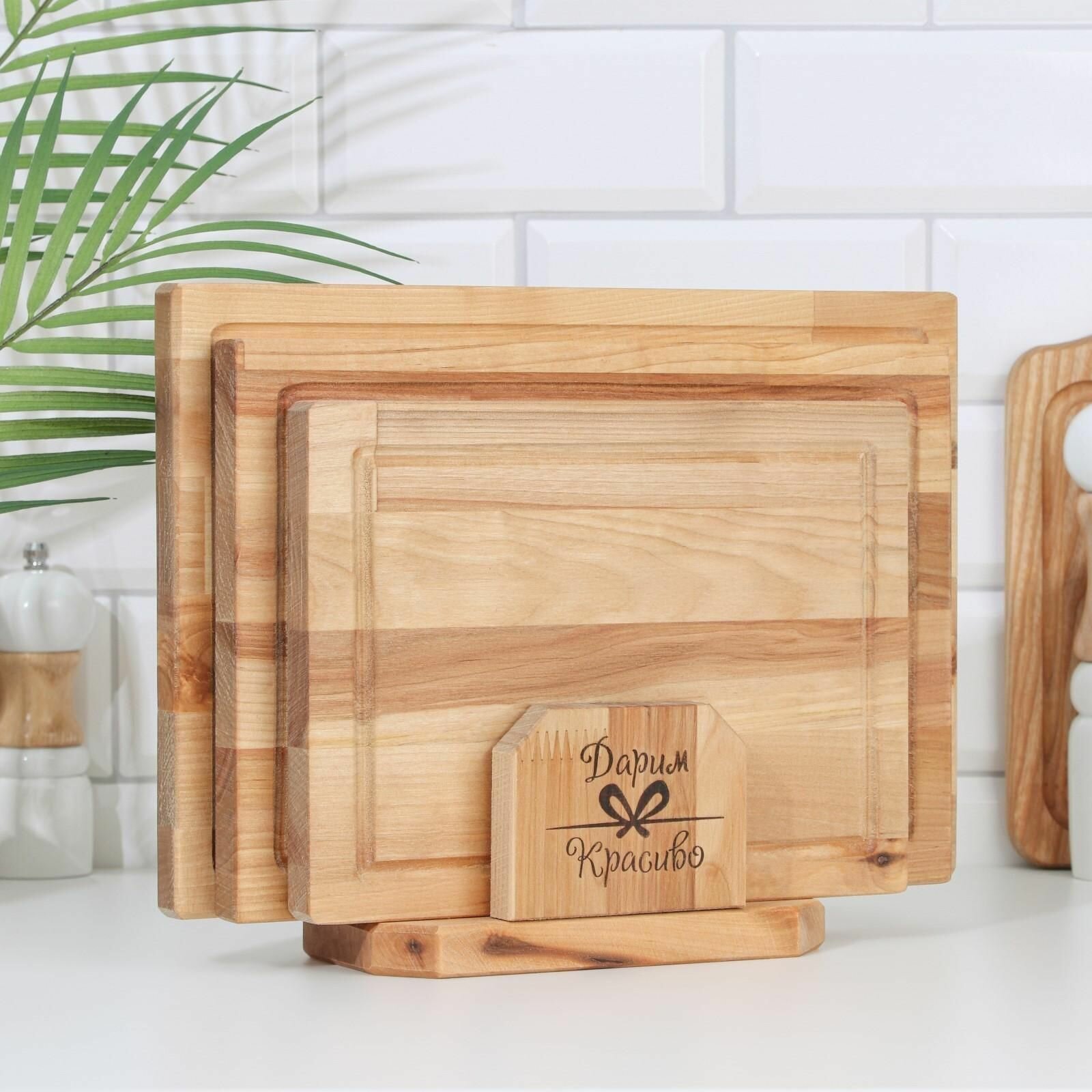 Доска разделочная деревянная для кухни набор + подставка, Набор 2 в 1