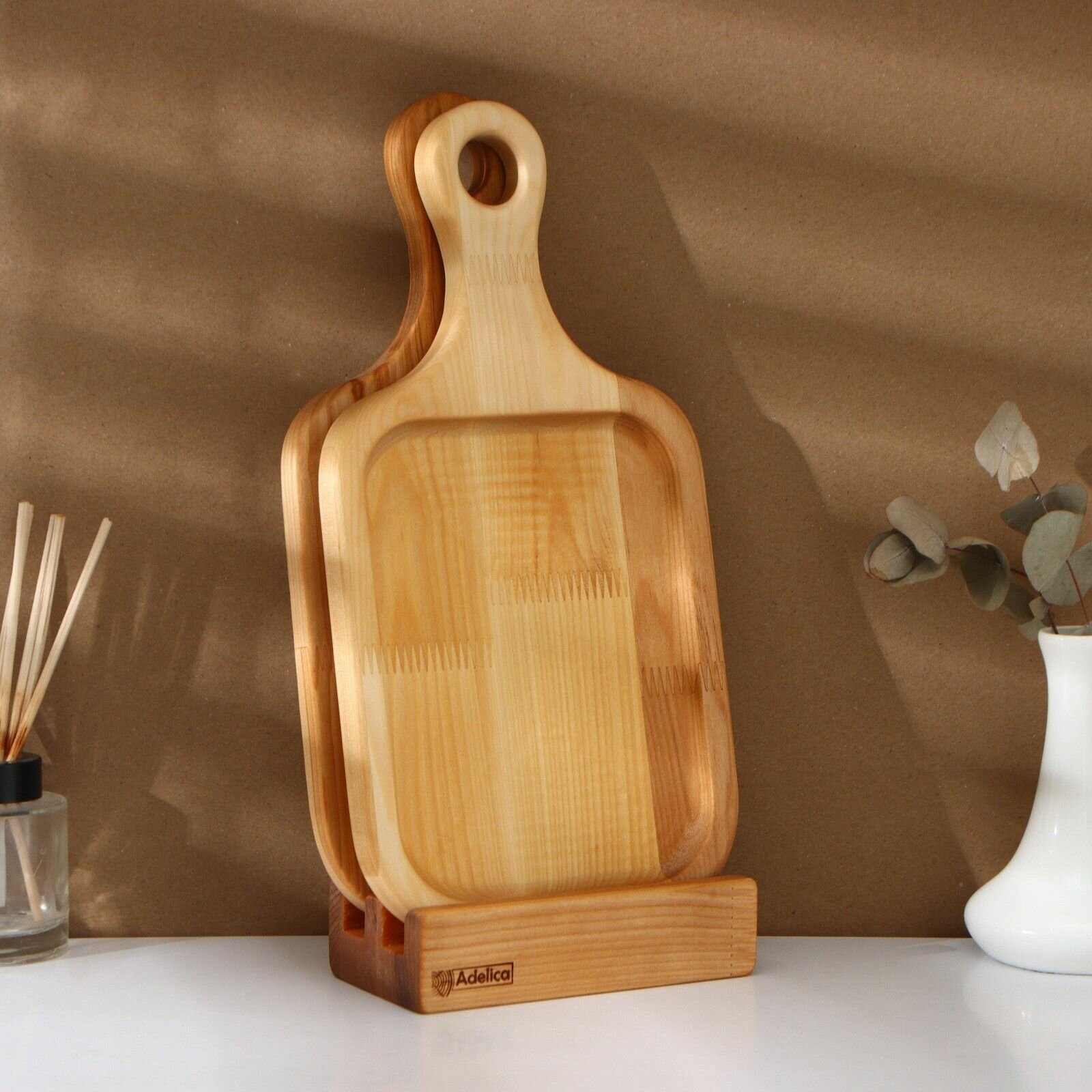 Доска разделочная деревянная для кухни набор + подставка, Набор 2 в 1