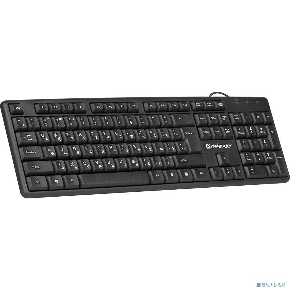 Клавиатура проводная DEFENDER Element HB-520, USB, 104 клавиши + 3 дополнительные клавиши, черная, 45522