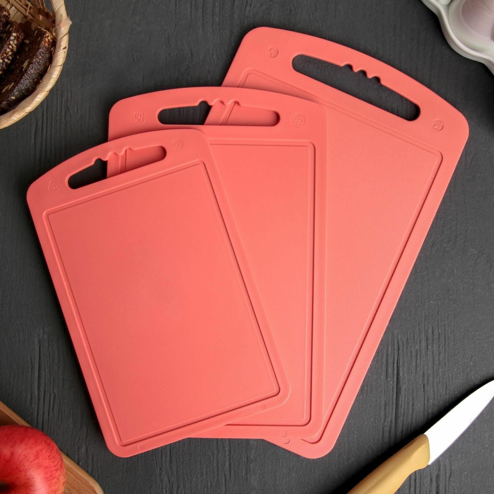 Набор разделочных досок, 3 шт: 24×15 см, 28×18 см, 32×20 см, цвет микс