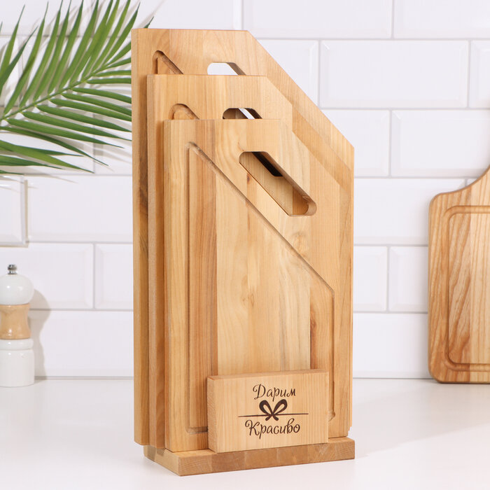 Доска разделочная деревянная для кухни набор + подставка, Набор 2 в 1