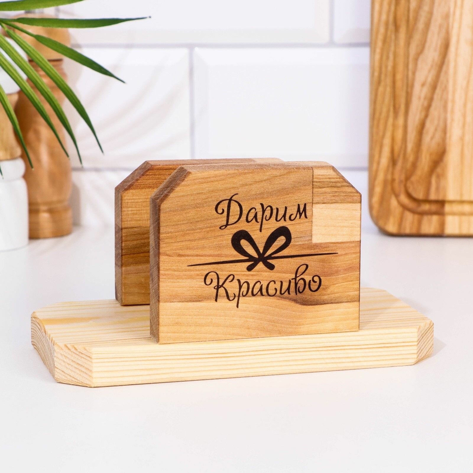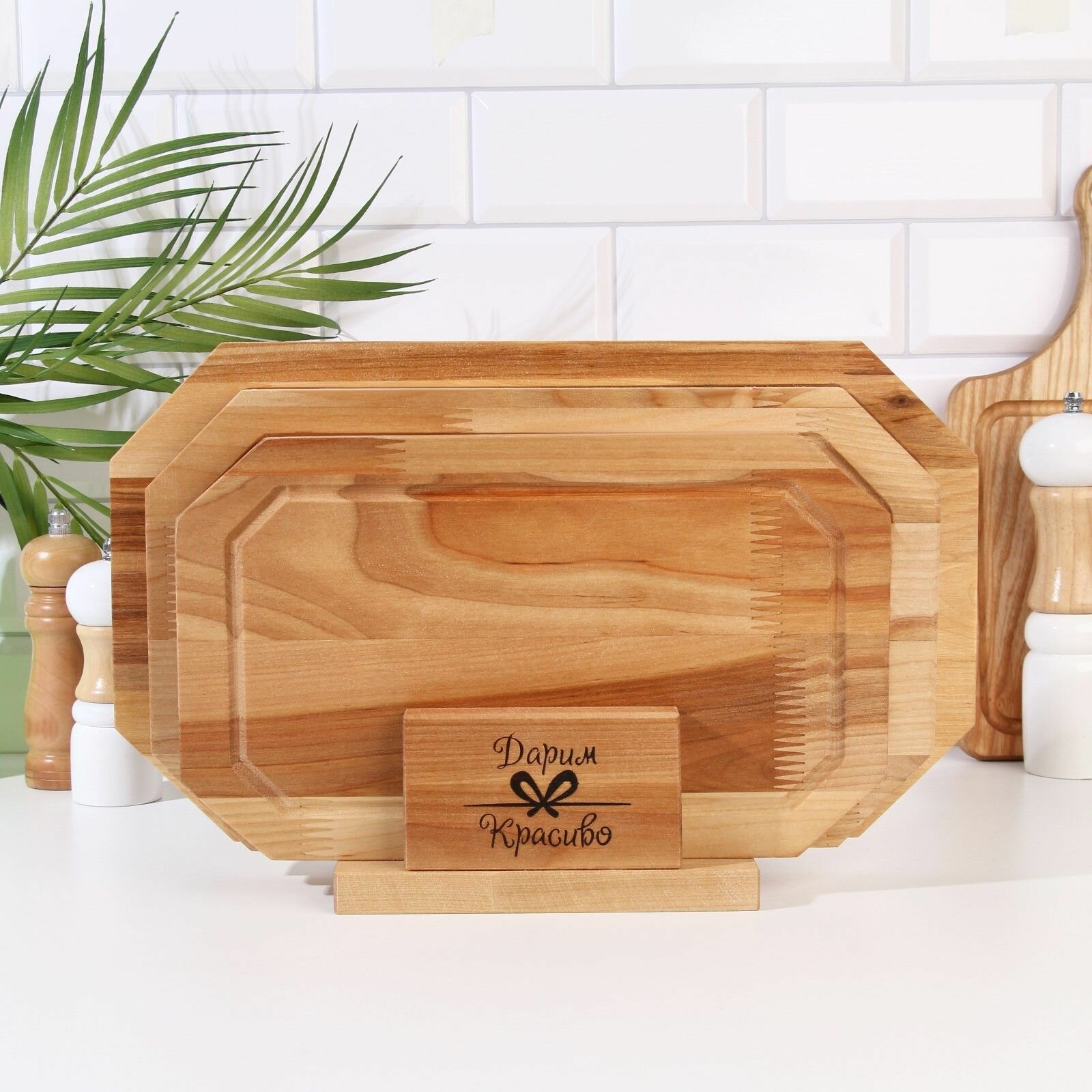 Доска разделочная деревянная для кухни набор + подставка, Набор 2 в 1