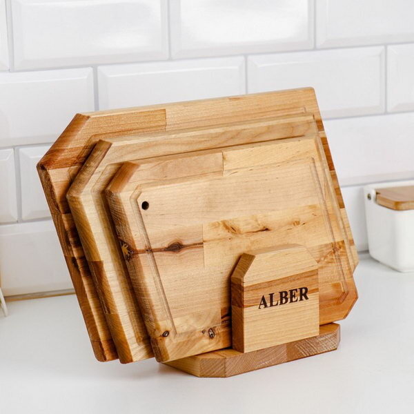 Доска разделочная деревянная для кухни набор + подставка, Набор 2 в 1