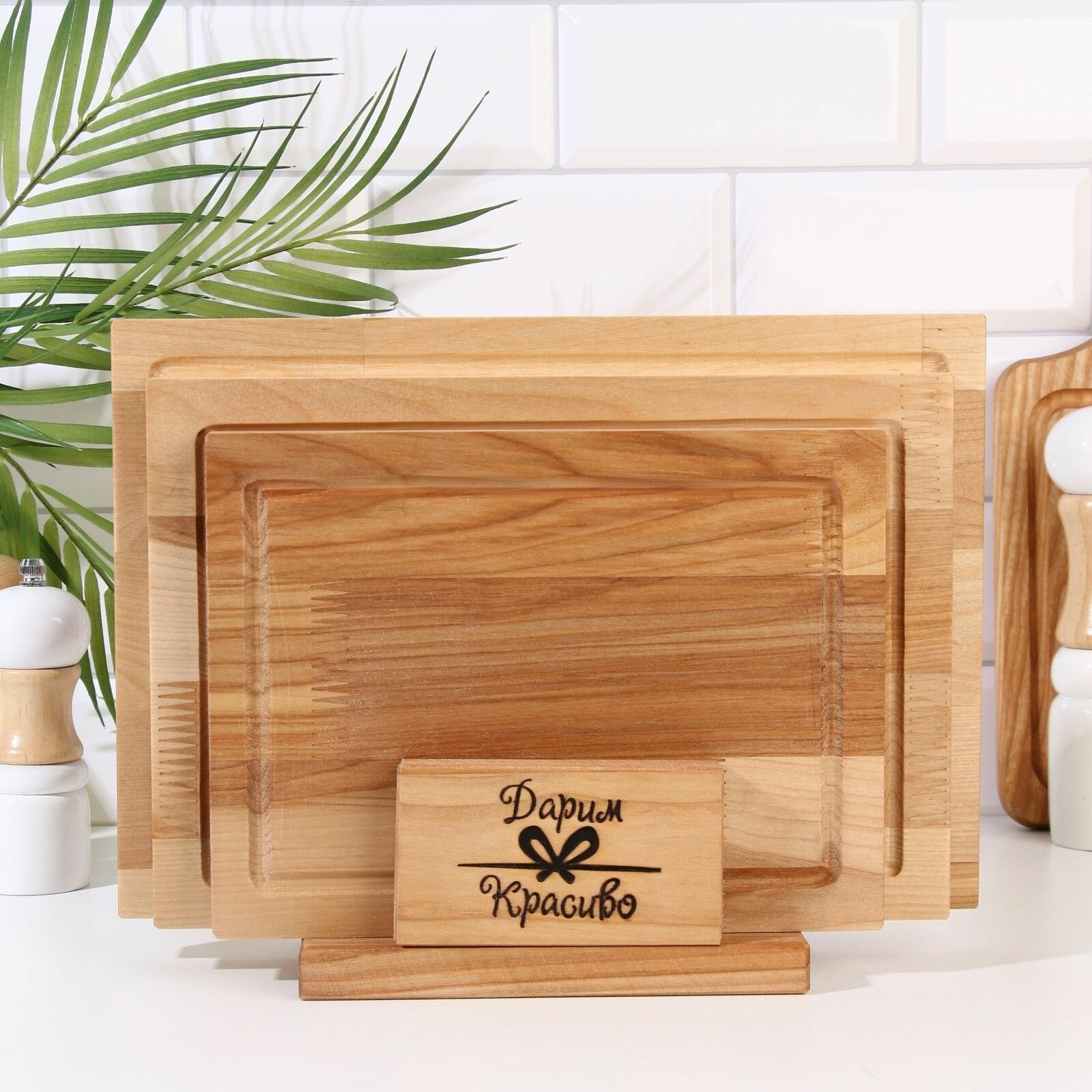 Доска разделочная деревянная для кухни набор + подставка, Набор 2 в 1