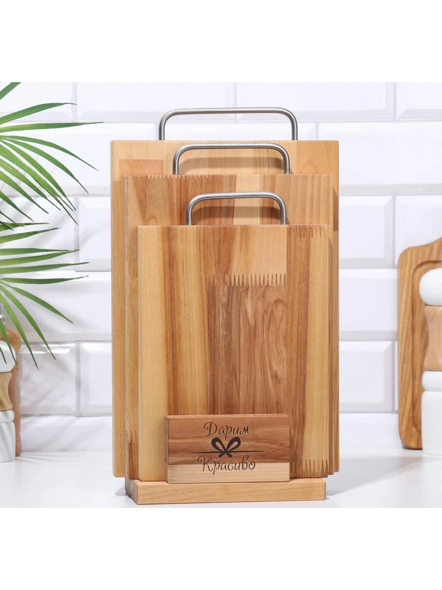 Доска разделочная деревянная для кухни набор + подставка, Набор 2 в 1