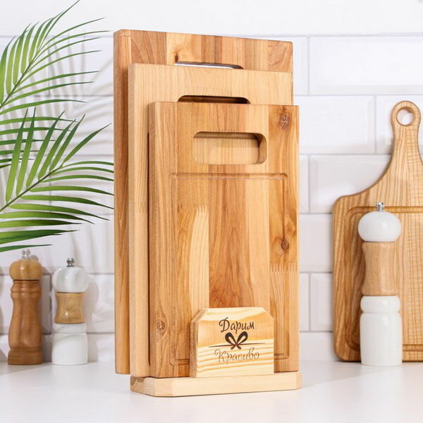 Доска разделочная деревянная для кухни набор + подставка, Набор 2 в 1