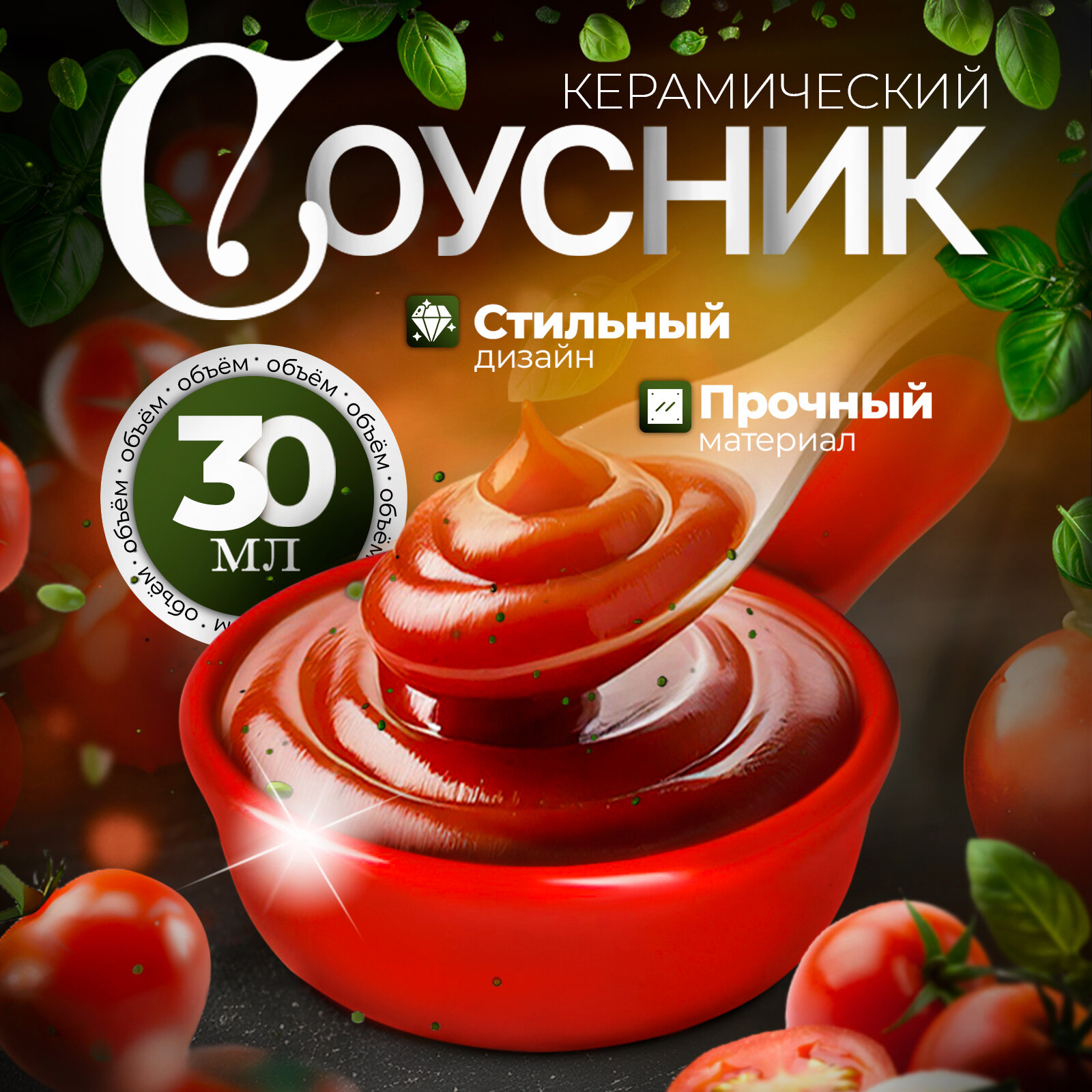 Соусник керамический с ручкой Доляна «Классика», 30 мл, 10×6 см, цвет красный интересное: