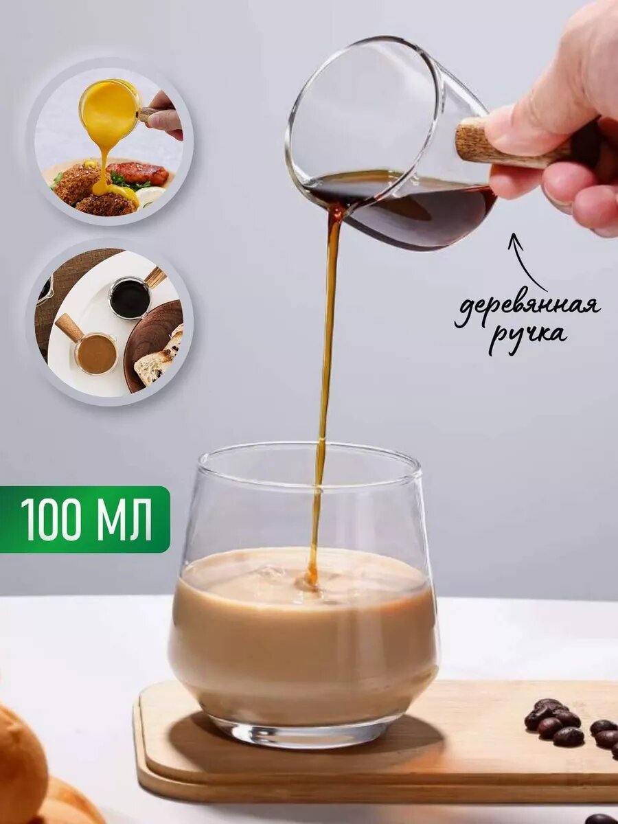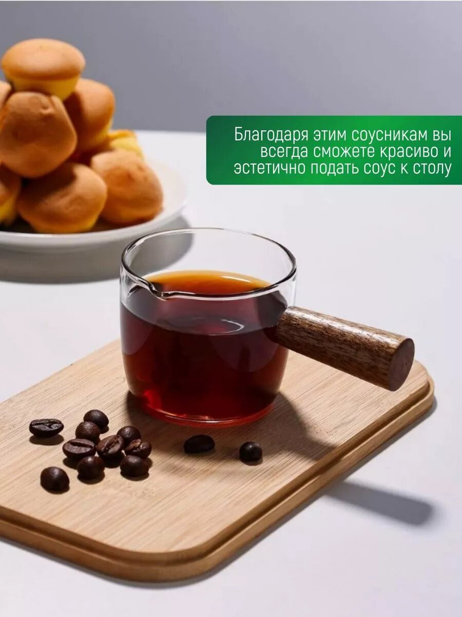 Стеклянный соусник с деревянной ручкой 100 мл набор 2 штуки