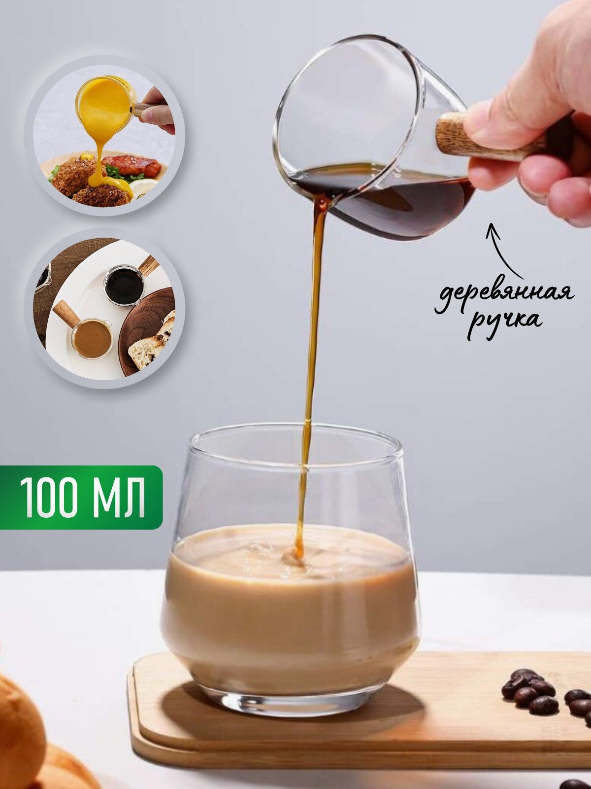| Комплектация | Стеклянный соусник с деревянной ручкой 2 штуки |