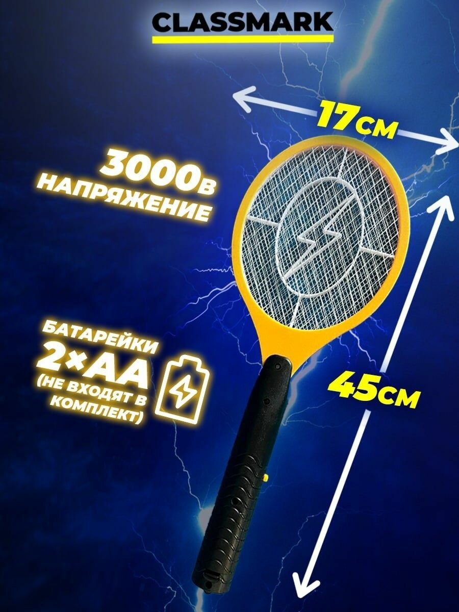 Мухобойка электрическая Мухоловка Classmark от мух в доме и на улице, уничтожитель летающих насекомых вредителей (мошек, моли), ловушка для комаров ракетка на батарейках москитная / 2 шт