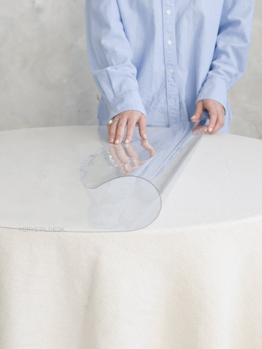 Круглая скатерть CrystalDesk (гибкое/мягкое стекло). Толщина 0.5 мм. ПВХ скатерть 50 см. Прозрачная. На круглый стол.