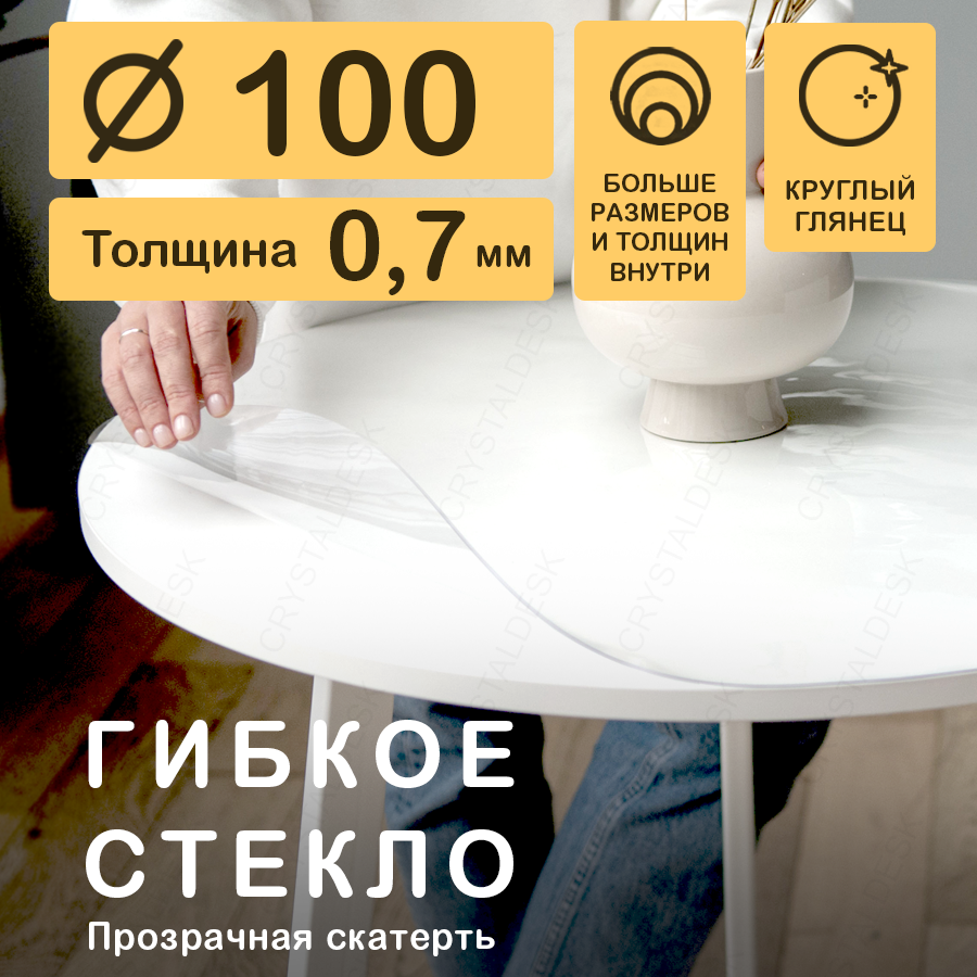 Купить Круглая скатерть (гибкое/мягкое стекло) CrystalDesk. Толщина 0.7 мм. ПВХ скатерть. D 100 см. Прозрачная. На круглый стол.