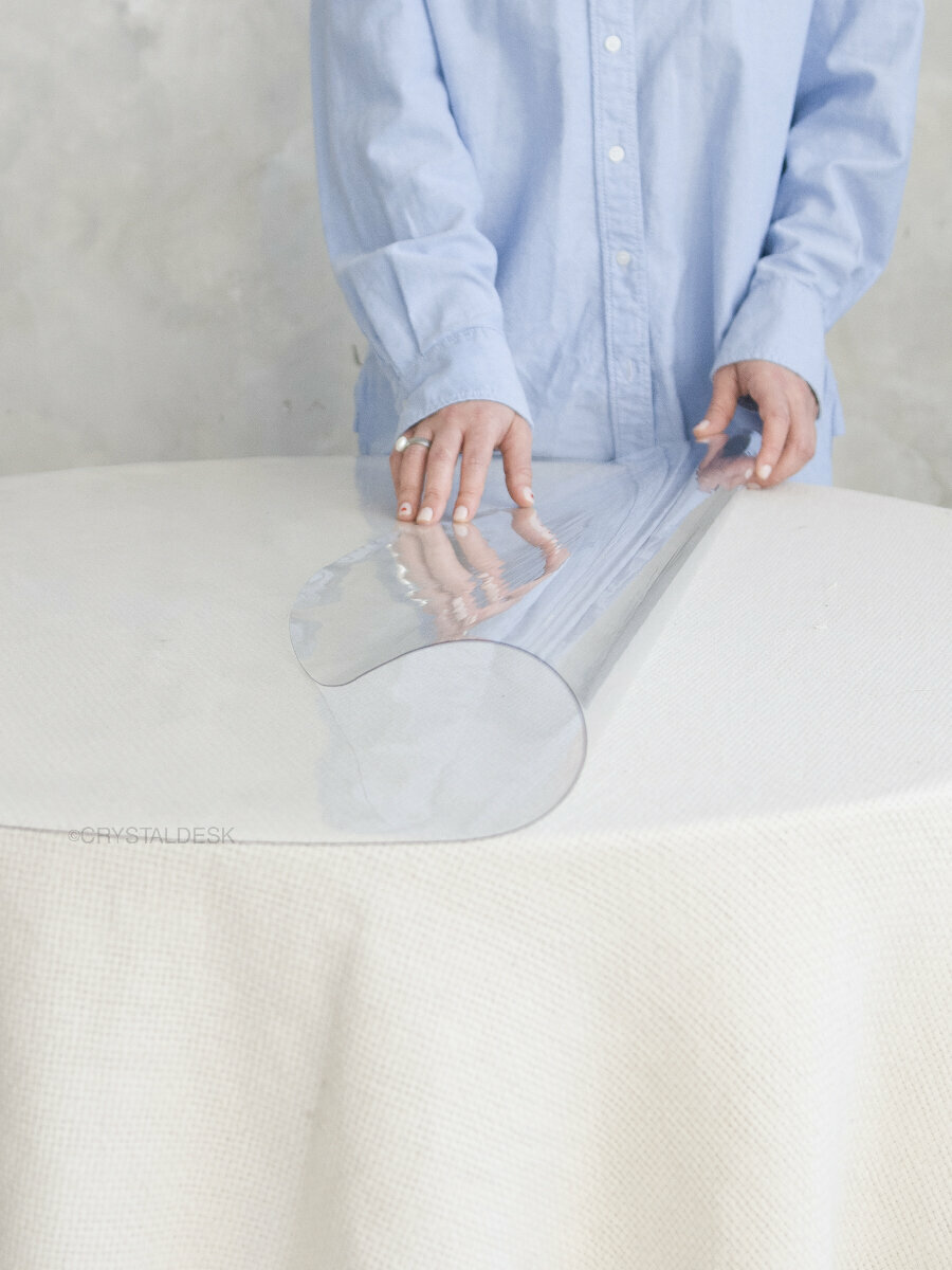 Круглая скатерть CrystalDesk (гибкое/мягкое стекло). Толщина 0.5 мм. ПВХ скатерть 50 см. Прозрачная. На круглый стол.