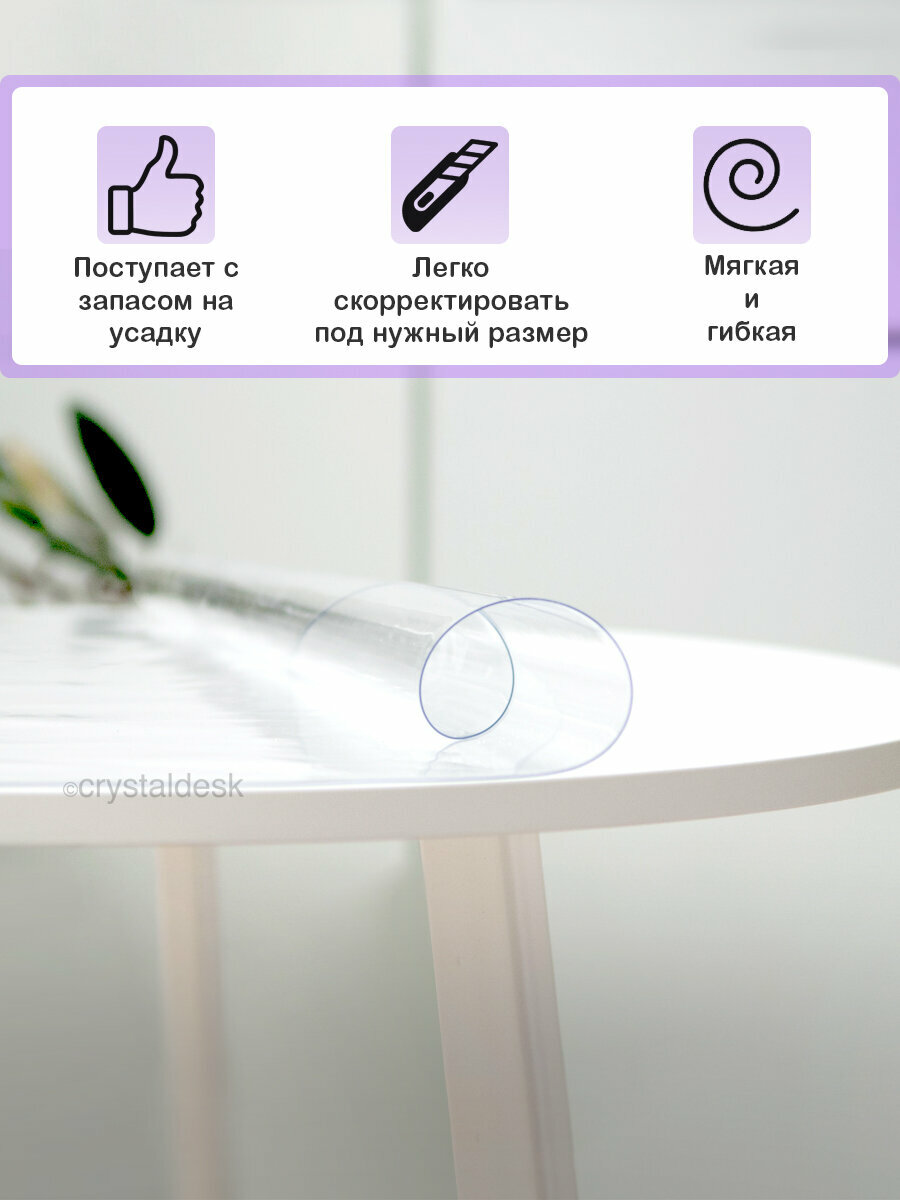 Круглая скатерть (гибкое/мягкое стекло) CrystalDesk. Толщина 0.7 мм. ПВХ скатерть. D 70 см. Прозрачная. На круглый стол.