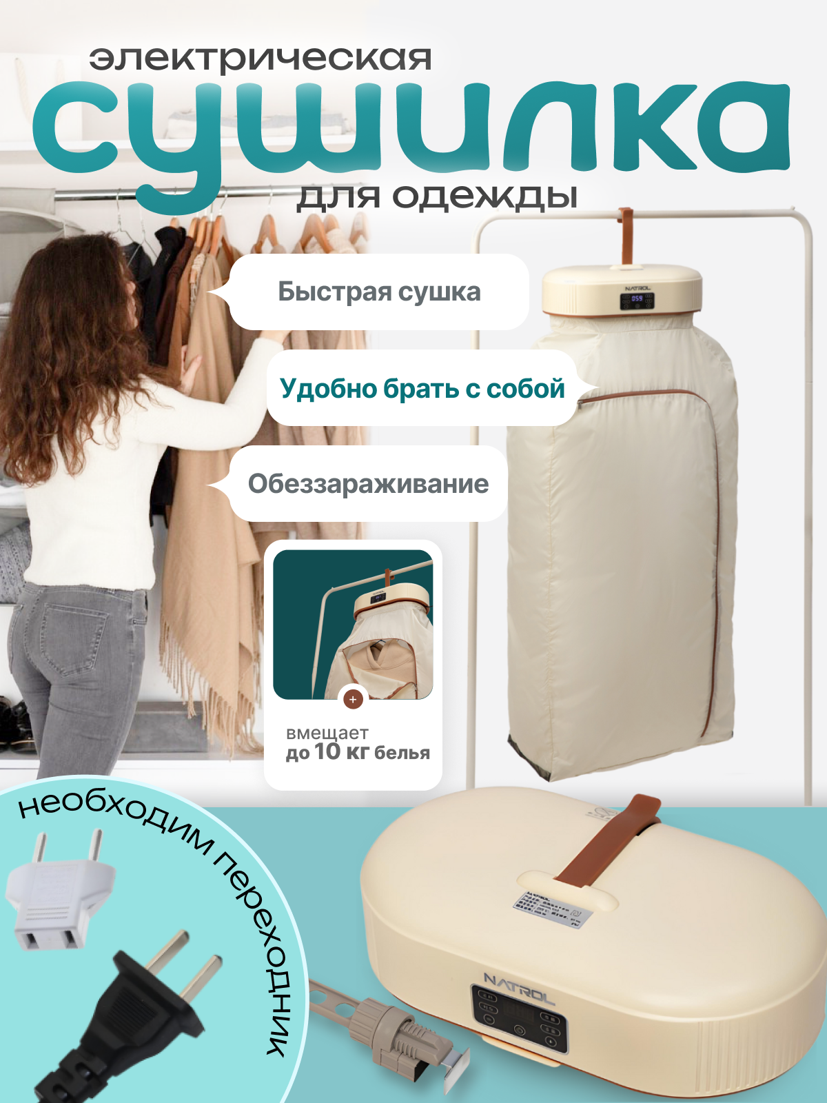 Портативная электрическая сушилка для одежды интересное: