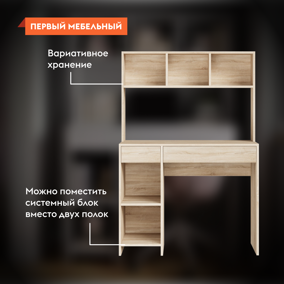 СохранитьКомпьютерный, письменный стол Элис с надстройкой, с ящиками, с полками, 100.2х50.2х147.6 см, Дуб Сонома интересное: