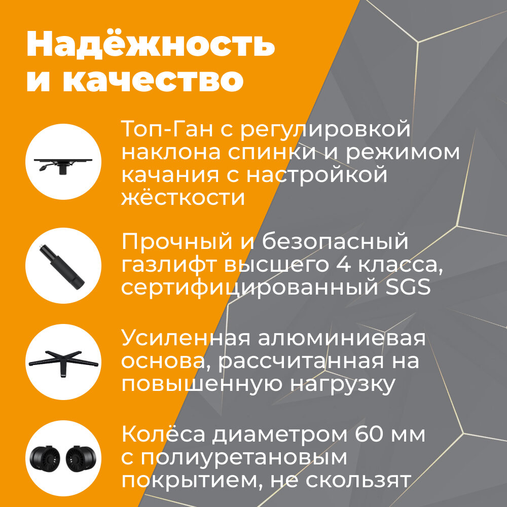 | Конструктивные особенности | с газлифтом / с колесами (роликами) / с подголовником / с подлокотниками / с поясничным упором |
