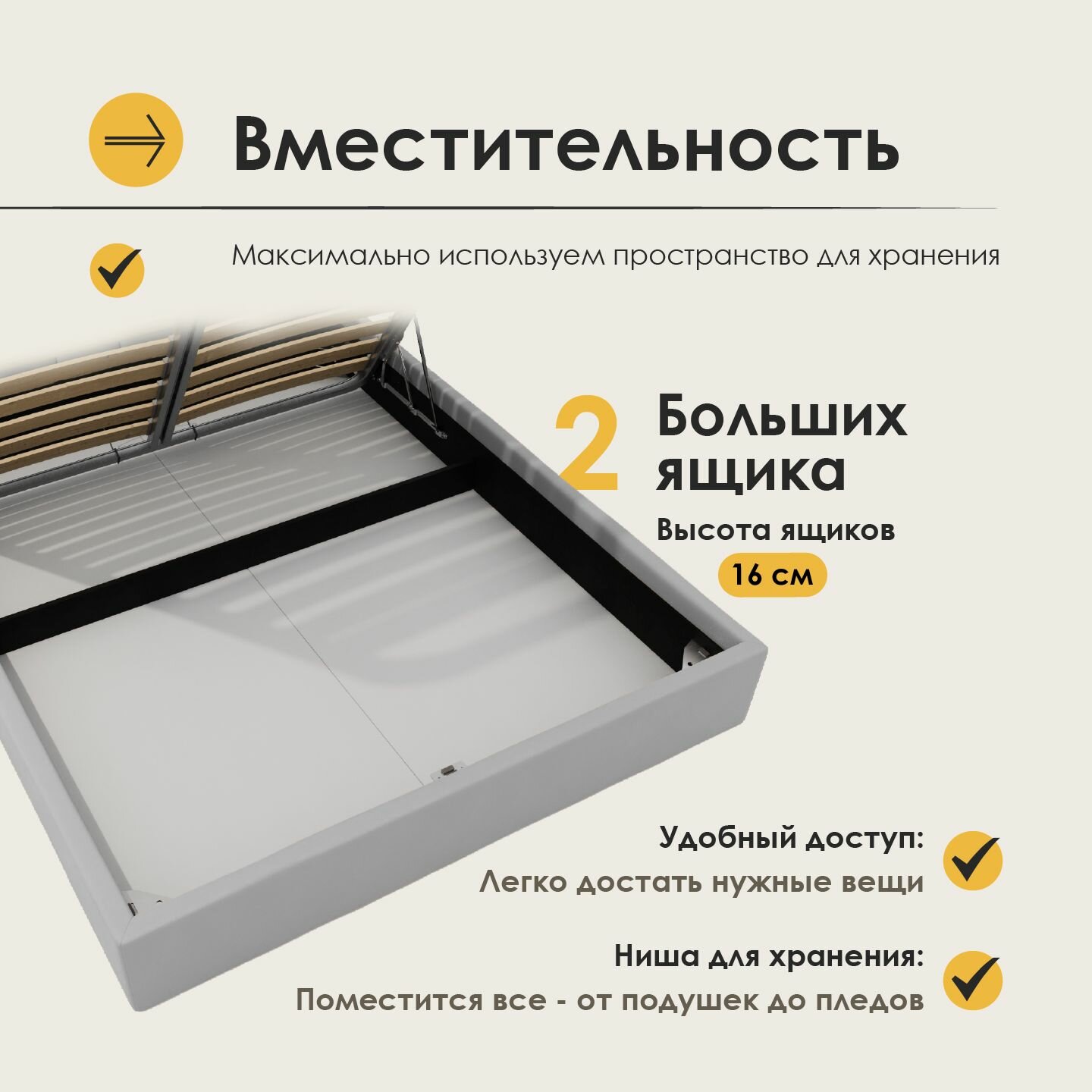 СохранитьКровать 180х200 двуспальная Маргарида, с матрасом Лекса, с подъёмным механизмом, с ящиками, с мягким изголовьем, светло-серая интересное: