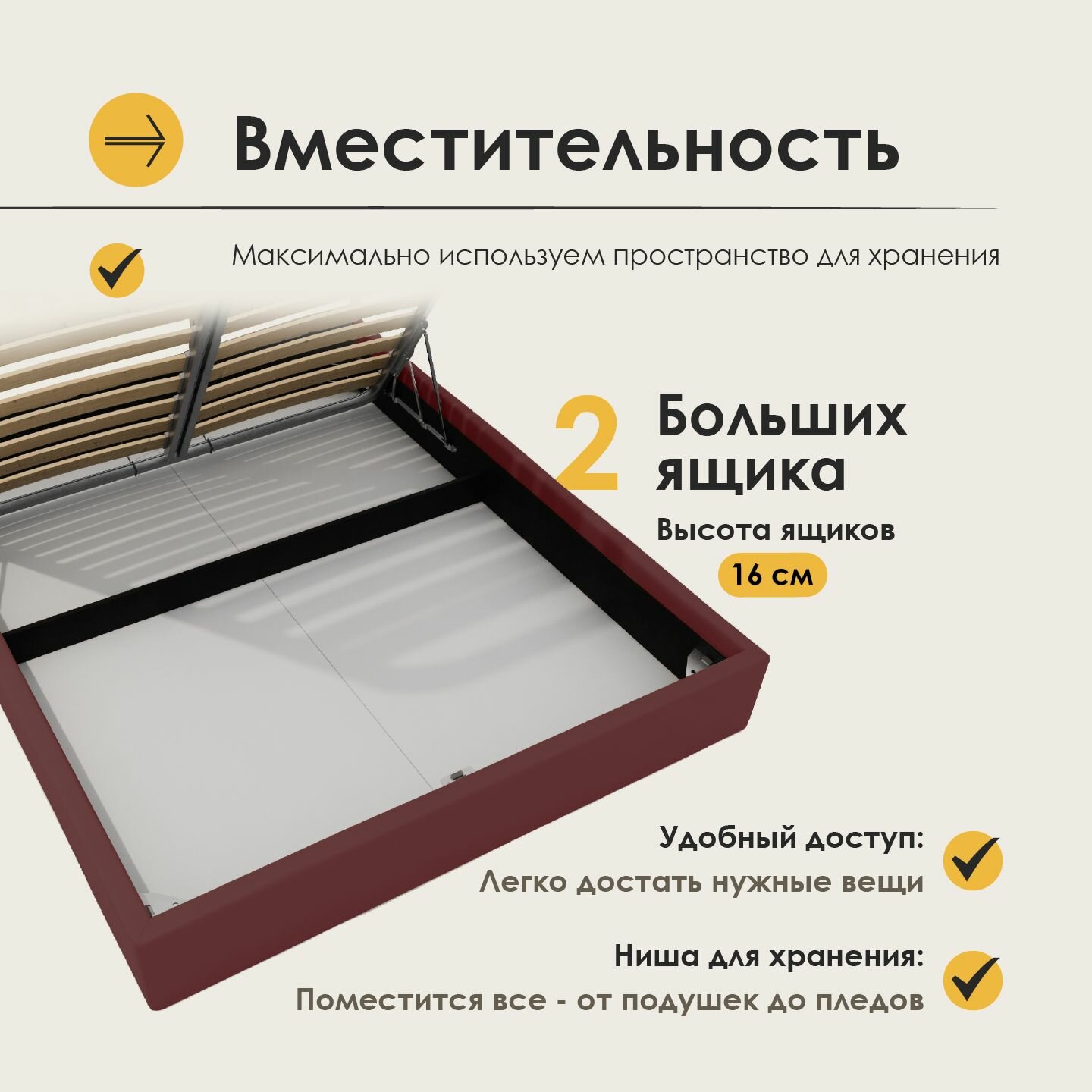 СохранитьКровать 140х200 двуспальная Маргарида, с матрасом Лекса, с подъёмным механизмом, с ящиками, с мягким изголовьем, бордовая интересное: