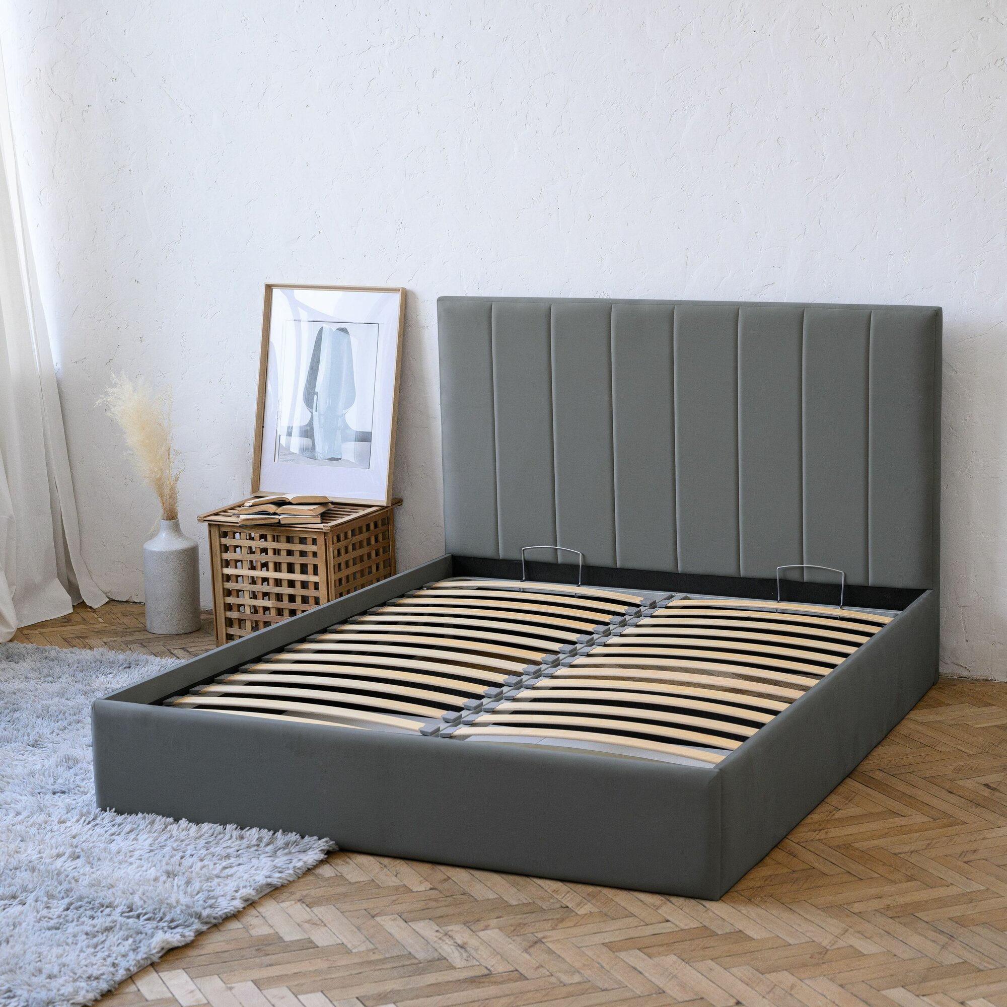Кровать 160х200 c подъемным механизмом, матрасом и бельевым ящиком Маргарида светло-серый