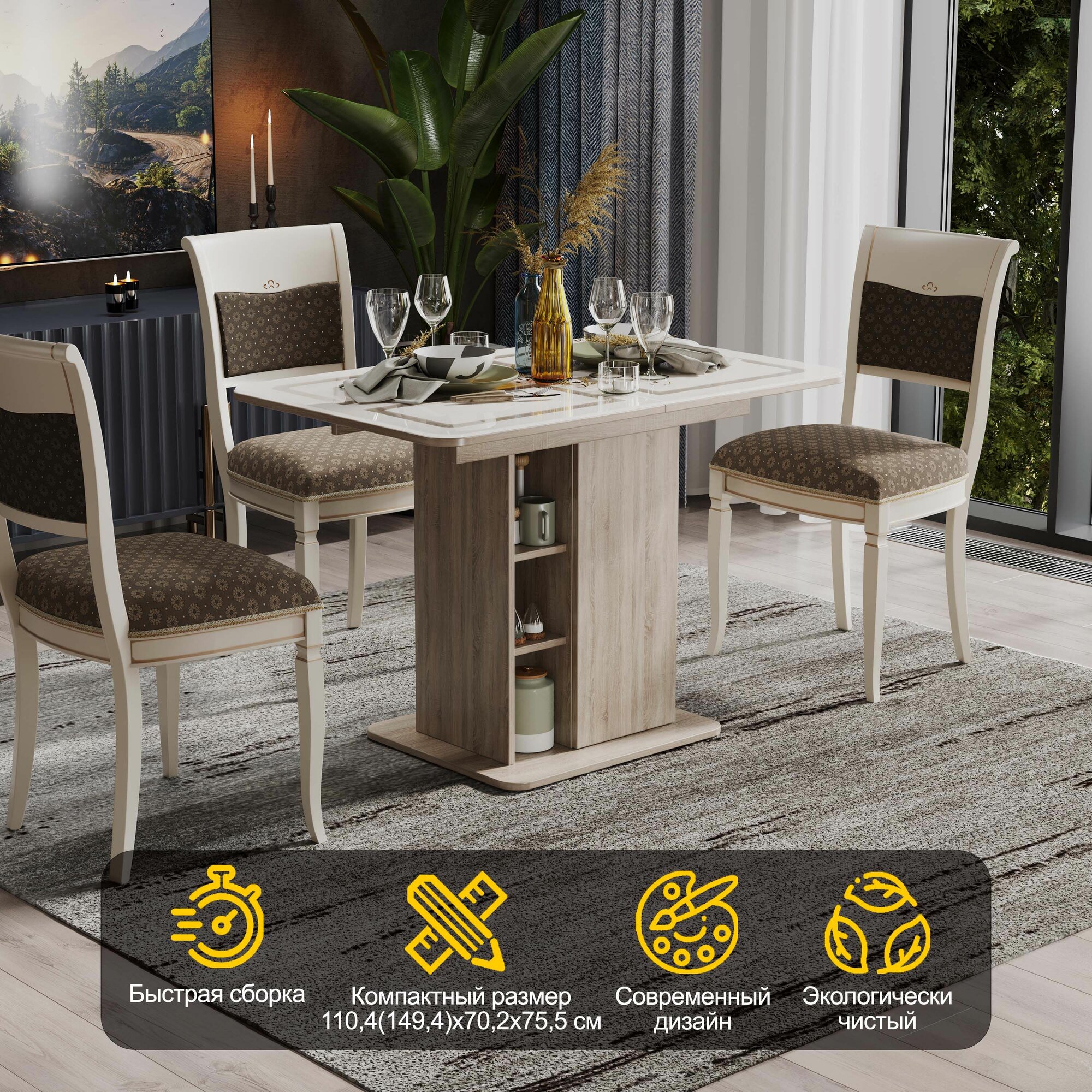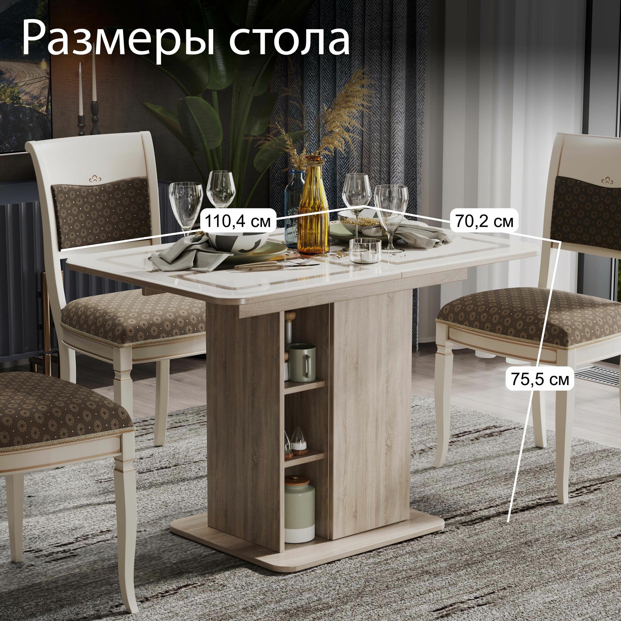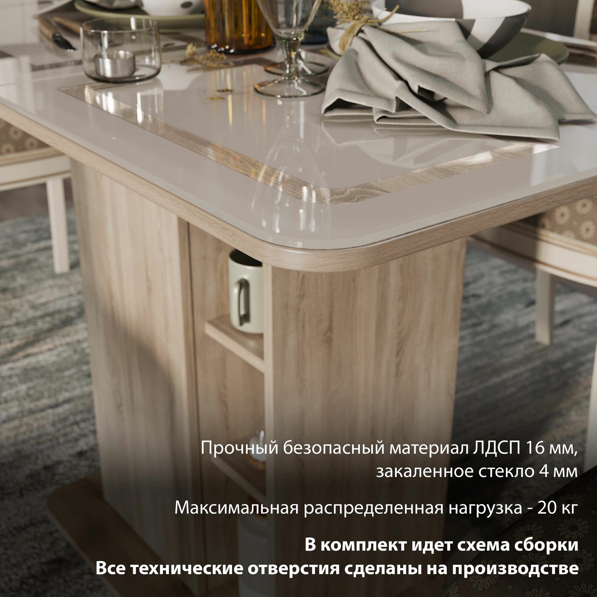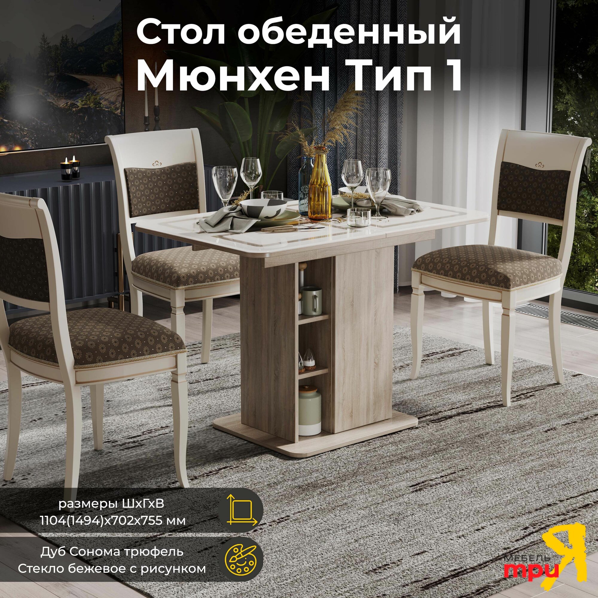 Стол кухонный , раздвижной Мюнхен тип 1 (Дуб Сонома трюфель/Стекло бежевое с рисунком) интересное: