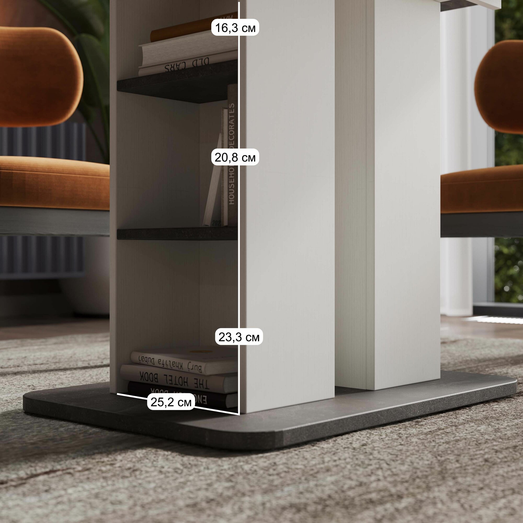 Стол обеденный раздвижной с полками белый серый, Мюнхен
