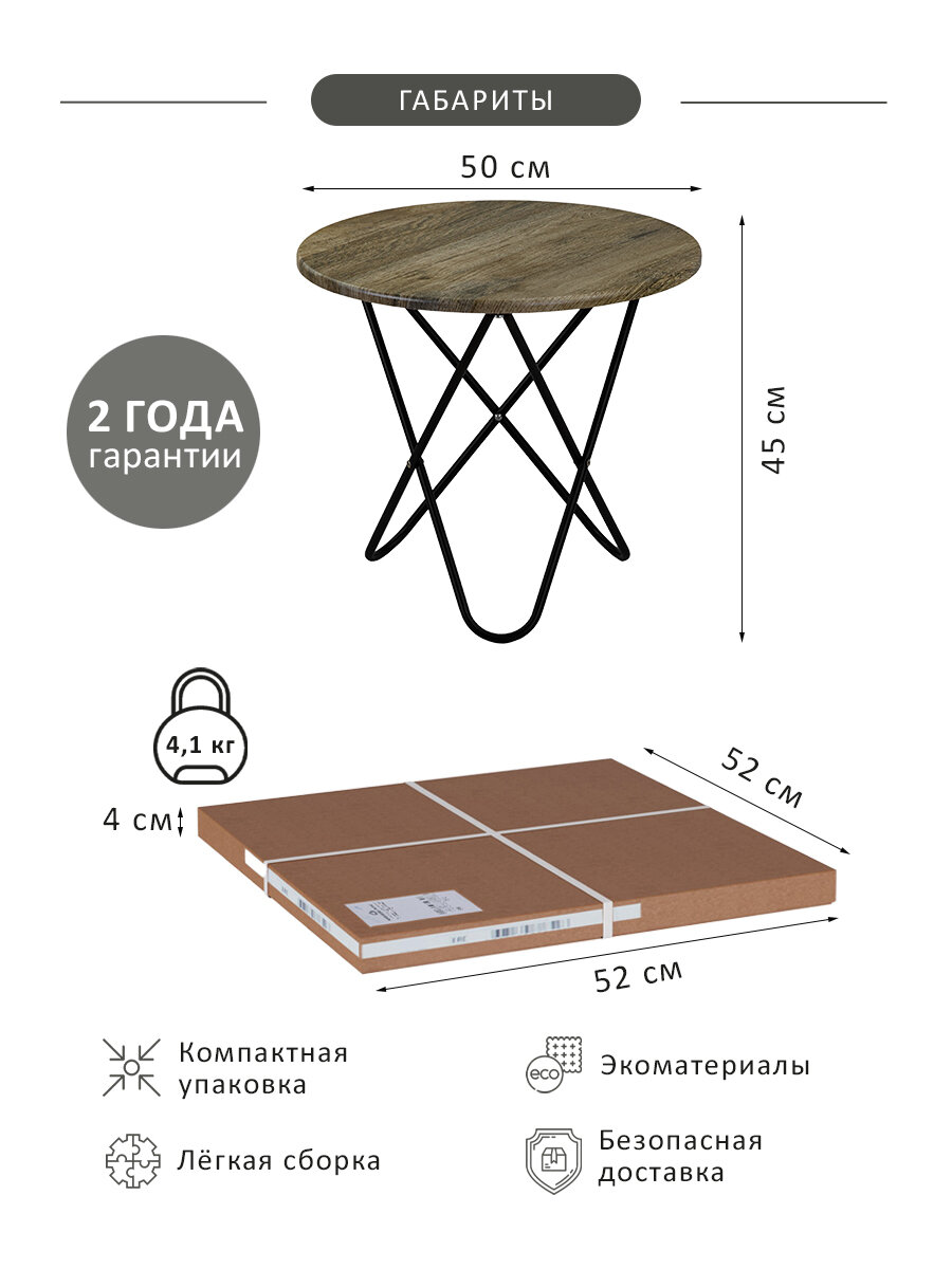 Журнальный стол Мебелик BeautyStyle 20 дуб крымский состаренный/черный (П0006261)