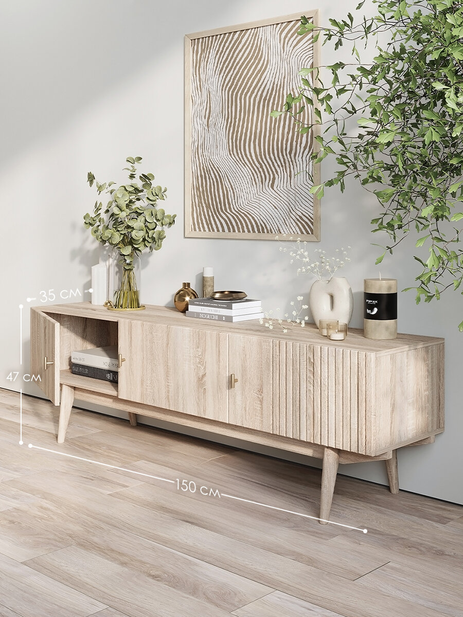 Купить Тумба под телевизор напольная на ножках Челси Puzzlemebel, 150 см, бежевый