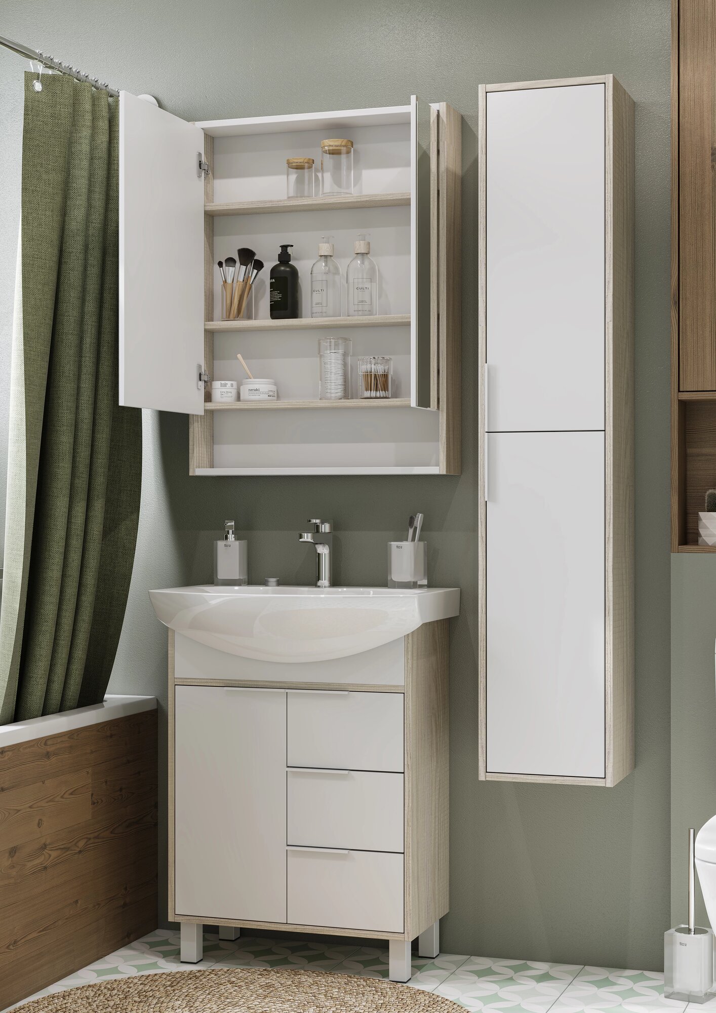 Шкаф-навесной в ванную Aquaton Оливия 1A254703OLUGL левый, грей/дуб ойстер