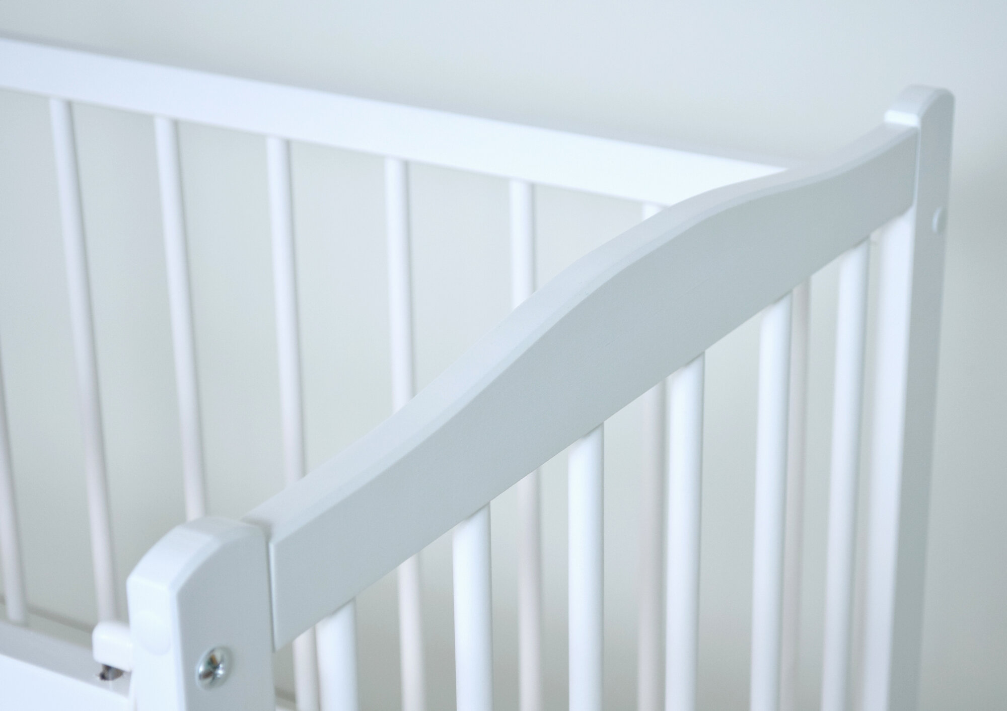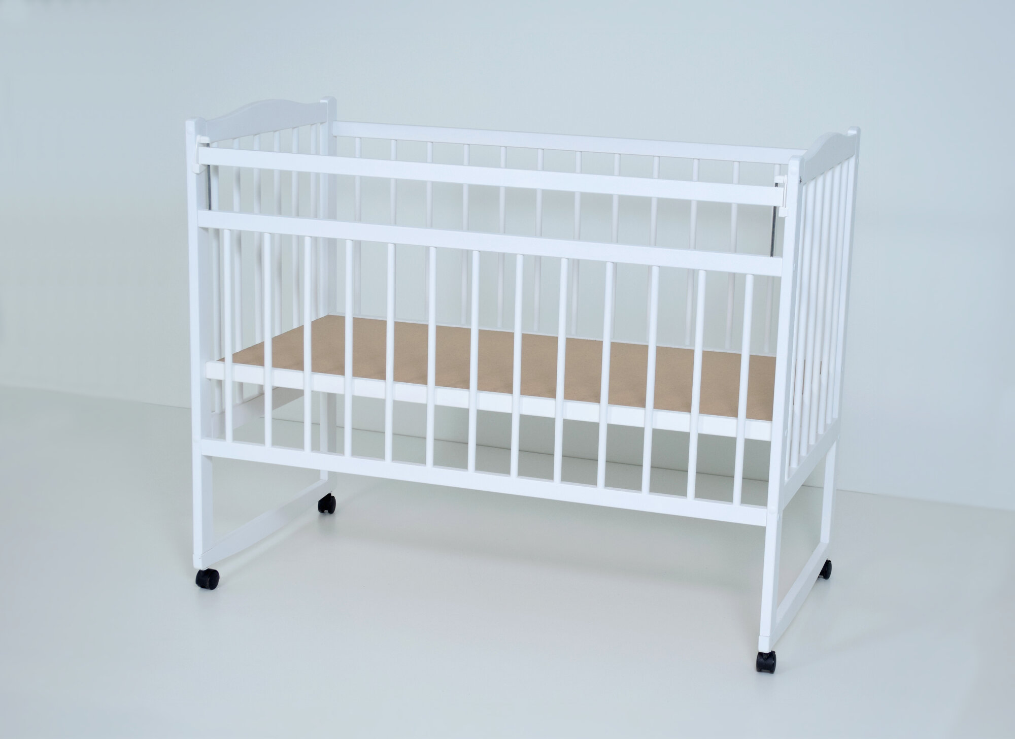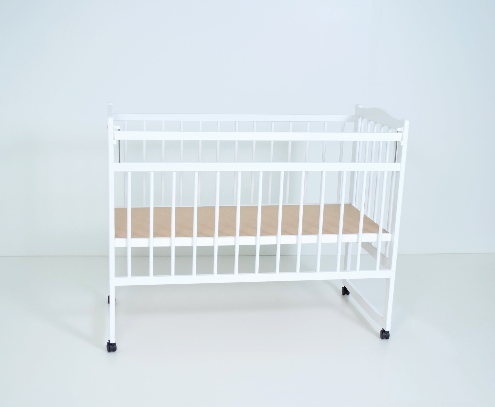 Купить Кроватка колесо качалка "Беби-2" опускающееся боковое ограждение цвет белый