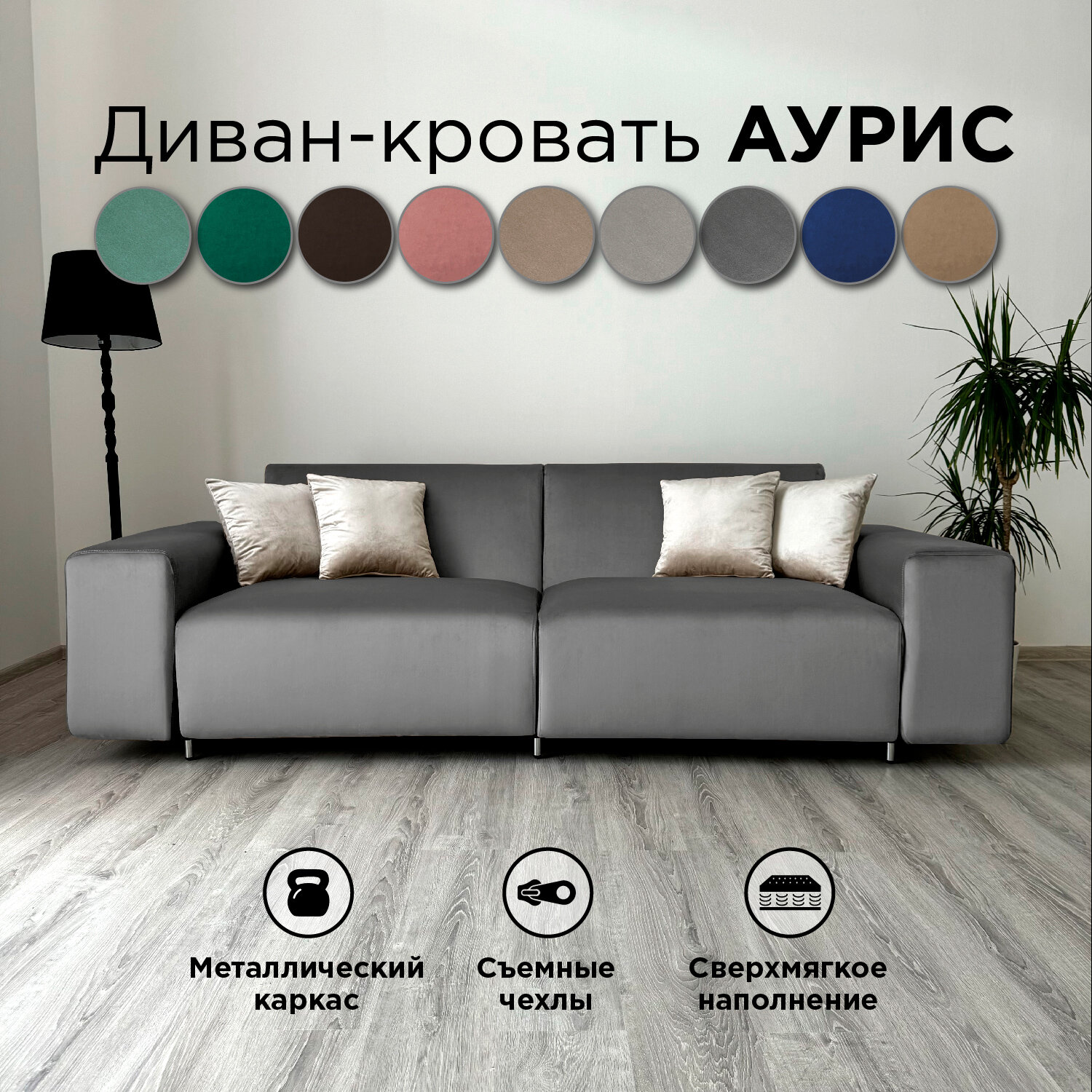 Диван-кровать Redsofa Аурис 260 см серый Ocean. Раскладной прямой диван со съемными чехлами, для дома и офиса.