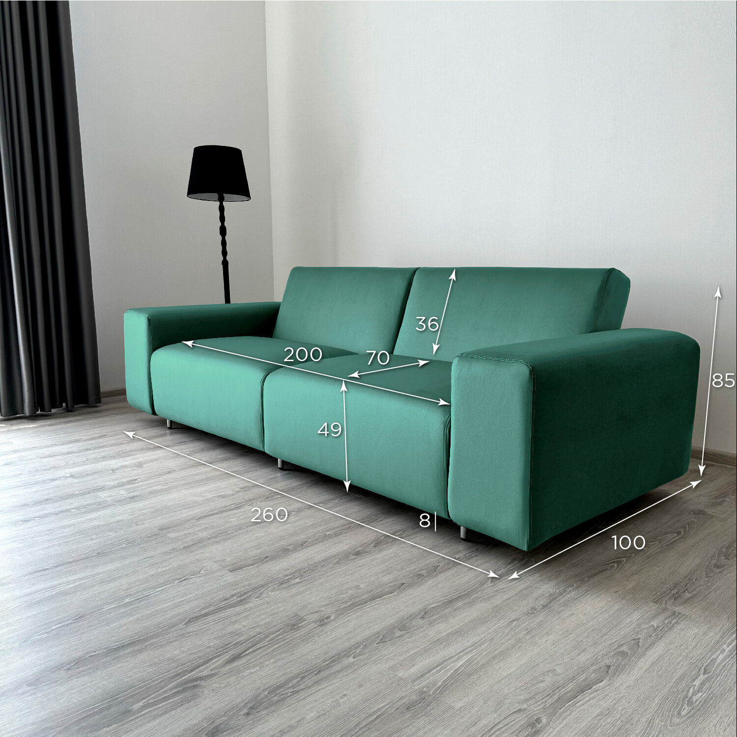 Диван-кровать Redsofa Аурис 260 см зеленый антивандальный. Раскладной прямой диван со съемными чехлами, для дома и офиса.