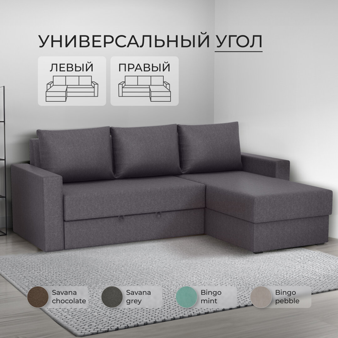 Диван угловой Sofos "Олимп", раскладной диван-кровать (221х159х90), серый