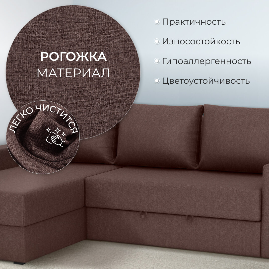 СохранитьУгловой диван-кровать Лео, с ящиком для хранения, механизм-дельфин, 216х158х76см коричневый интересное:
