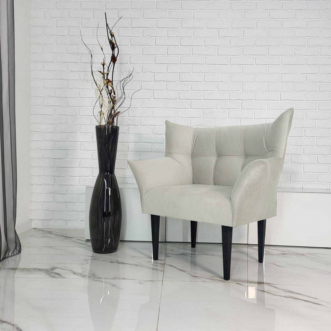 Кресло " Бьянка ", велюр, серый, 89 см x 60 см x 97 см , каркас из фанеры