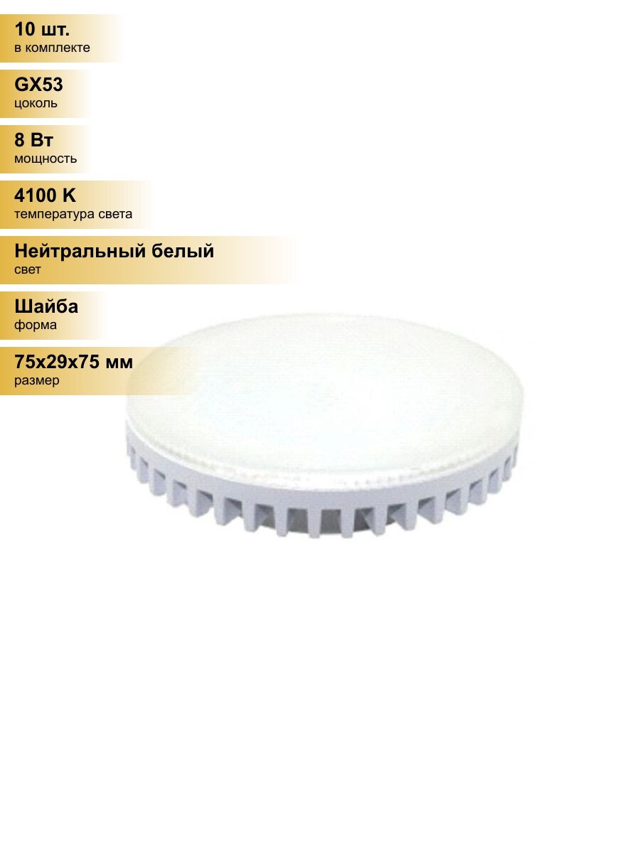 Сохранить(10 шт.) Светодиодная лампочка SmartBuy GX53 св/д 8W(650lm) 4100K 4K 75x29 матов. пластик SBL-GX-8W-4K Нейтральный белый. Цоколь GX53 интересное: