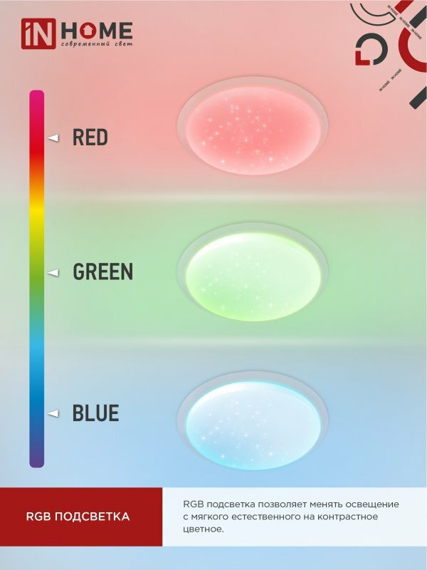 Светильник светодиодный COMFORT MYSTERY, RGB подсветка, 75Вт 230В 3000-6500К 6000лм, пульт ДУ, IN HOME