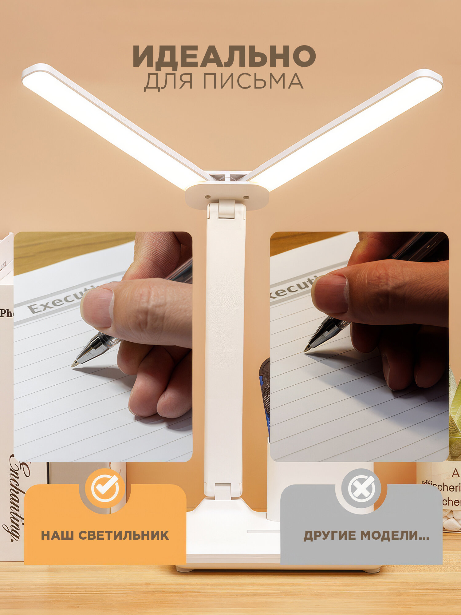 Двуглавая настольная складная лампа, перезаряжаемая, светодиодная, для чтения интересное: