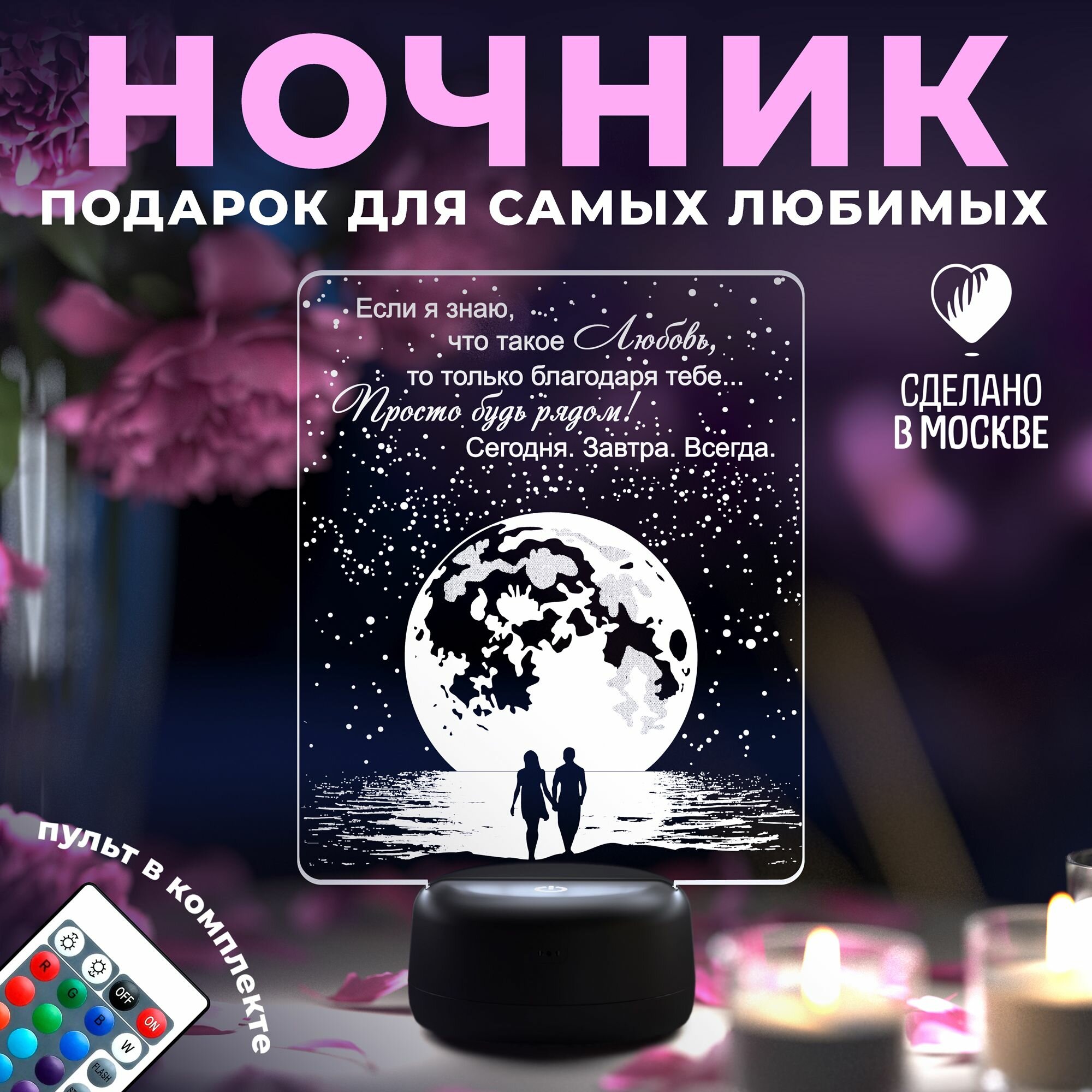 Ночник "Море и луна" (люблю тебя сильнее) - подарок любимой жене, девушке на 14 февраля, 8 марта